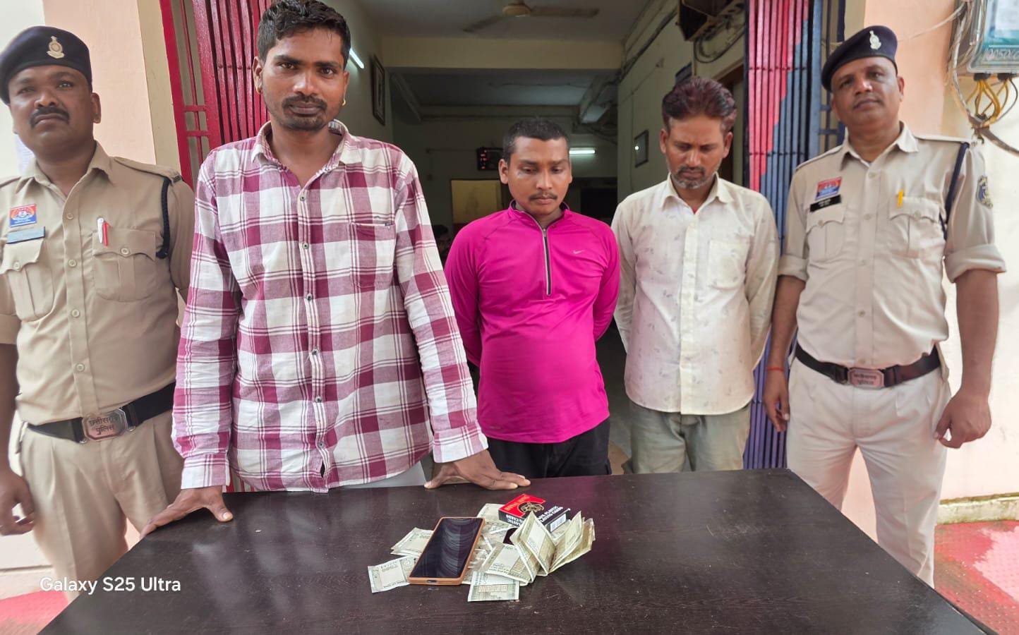 धमतरी | एसपी धमतरी के निर्देश पर जिले में जुआ-सट्टा एवं अवैध गतिविधियों पर अंकुश लगाने लगातार कार्यवाही की जा रही है। इसी क्रम में थाना सिटी कोतवाली धमतरी को मुखबिर से सूचना मिली कि सोरिद नगर शांति घाट के पास बिजली लाईट के नीचे कुछ लोग काट-पत्ती (52 पत्ती ताश) पर रुपए-पैसे का दांव लगाकर जुआ खेल रहे हैं। सूचना पर तत्काल कोतवाली पुलिस की टीम मौके पर पहुंची और घेराबंदी कर 03 जुआरियों को रंगे हाथ पकड़ लिया। जुआरियों के नाम-: (01) गोपाल साहू पिता मंगल, उम्र 27 वर्ष, निवासी मराठापारा धमतरी, थाना सिटी कोतवाली धमतरी, जिला धमतरी(छ.ग.) (02) गजेन्द्र माहू पिता शत्रुहन, उम्र 40 वर्ष, निवासी सांकरा,थाना अर्जुनी जिला धमतरी(छ.ग.) (03) धमेन्द्र साहू पिता रोहित, उम्र 25 वर्ष, निवासी लिमतरा, थाना अर्जुनी,जिला धमतरी(छ.ग.) जप्त सामग्री गवाहों के समक्ष जुआरियों के कब्जे से बरामद नकदी रकम 15,400/-रूपये एक मारुति वेगनआर कार (पुरानी, उपयोगशुदा) कीमती लगभग 75,000/-रूपये , 52 पत्ती ताश कुल जुमला कीमती- 90,400/-रूपये कानूनी कार्यवाही मामले में थाना सिटी कोतवाली धमतरी में अपराध क्र. 202/25 धारा 3(2) छ.ग. जुआ प्रतिषेध अधिनियम के तहत अपराध पंजीबद्ध किया गया, एवं पृथक से धारा 170,126,135(3) बीएनएसएस.प्रतिबंधक धाराओं के तहत भी कार्यवाही कर कार्यपालिक दंडाधिकारी के समक्ष पेश किया जा रहा है। धमतरी पुलिस का संदेश जिले में जुआ, सट्टा एवं नशे जैसी अवैध गतिविधियों के खिलाफ सख्त अभियान जारी है। आम जनता से अपील है कि किसी भी प्रकार की अवैध गतिविधि की सूचना तुरंत पुलिस को दें।
