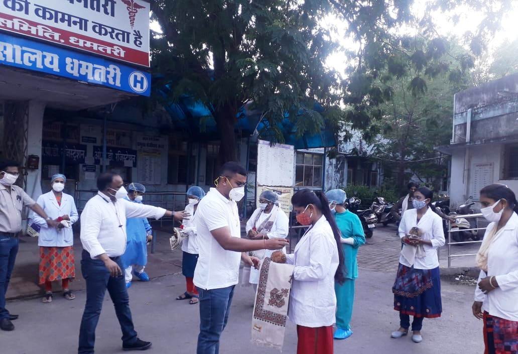 धमतरी | अंतर्राष्ट्रीय नर्स दिवस के अवसर पर आज शाम कलेक्टर श्री जयप्रकाश मौर्य ने जिला अस्पताल में कोविड-19 के मरीजों की सतत् देखभाल एवं उपचार करने वाली नर्सों को पुष्पगुच्छ, शॉल और श्रीफल भेंट कर उन्हें सम्मानित किया। सम्मानित होने वाली नर्स में सुश्री मीतू, भुनेश्वरी, डिलेश्वरी, भावना, भूमिका, बबली, सावित्री, पूनम, ओनामिका, वंदना, तिलांजली, बिन्दु, गंगा, रेणुका, ललिता, देवबती, यमुना और नेहा शामिल थीं। इस अवसर पर जिला पंचायत के सी.ई.ओ. श्री मयंक चतुर्वेदी, एसडीएम धमतरी श्रीचंद्रकांत कौशिक, मुख्य चिकित्सा एवं स्वास्थ्य अधिकारी डॉ.डी.के.तुर्रे, अस्पताल अधीक्षक डॉ.मूर्ति तथा चिकित्सक डॉ. विजय फूलमाली उपस्थित रहे। इसके अलावा प्राथमिक स्वास्थ्य केन्द्र भटगांव पहुंचकर भी कलेक्टर ने नर्सों को सम्मानित कर उन्हें कोरोना के खिलाफ जंग में अग्रणी योद्धा निरूपित किया तथा ऐसे ही आगे की लड़ाई पूरी शिद्दत के साथ लड़ने के लिए अपनी शुभकामनाएं दीं।
