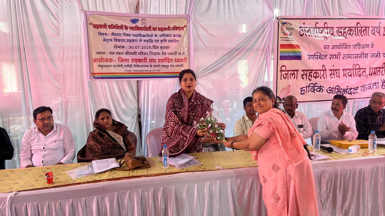 धमतरी | जिला सहकारी संघ धमतरी के तत्वाधान में जिले के 74 लैंप्स व पैक्स के नवनियुक्त प्राधिकृत अधिकारियों का एकदिवसीय प्रशिक्षण 30 जुलाई 2025 को नीलामी परिसर वन विभाग धमतरी में आयोजित किया गया, जिसमें पदाधिकारियों के अधिकार एवं कर्तव्य, नेतृत्व विकास, सहकार से समृद्धि एवं कृषि संबंधित विषयों पर प्रशिक्षण प्रदान किया गया। कार्यक्रम की मुख्य अतिथि रंजना डीपेंद्र साहू पूर्व विधायक धमतरी, अध्यक्षता मीना साहू सभापति सहकारिता जिला पंचायत धमतरी, विशिष्ट अतिथि डेमू साहू पूर्व सरपंच, अति विशिष्ट अतिथि प्रदीप ठाकुर उपायुक्त सहकारिता, पी सी ध्रुव मुख्य कार्यपालन अधिकारी छग राज्य सहकारी संघ रायपुर, डॉ ए एन दीक्षित प्रवक्ता एवं पूर्व प्राचार्य पीजी कॉलेज, डॉ ईश्वर सिंह वरिष्ठ वैज्ञानिक केवीके धमतरी, सुश्री सुमन ध्रुव सहायक आयुक्त सहकारिता, बलराम पुरी गोस्वामी नोडल अधिकारी एवं अन्य अतिथि सी पी साहू प्राधिकृत अधिकारी जिला सहकारी संघ धमतरी, डॉ दीपिका चंद्रवंशी उद्यानिकी विभाग, पूर्णिमा घानेकर एससीआई, लाल बहादुर सिंह फील्ड ऑफिसर इफको, किशन यदु शाखा प्रबंधक मुख्य रूप से उपस्थित रहे। कार्यक्रम का शुभारंभ समस्त अतिथियों द्वारा मां सरस्वती के तैल चित्र पर माल्यार्पण कर एवं दीप्रज्वलन कर किया गया। कार्यक्रम में मुख्य अतिथि रंजना साहू ने अपने उद्बोधन में कहा कि समस्त मनोनीत प्राधिकृत अधिकारियों का चयन कर योग्य व्यक्तियों को ही जिम्मेदारी दी गई है। वर्तमान परिपेक्ष में सहकारिता को समझना एक टेढ़ी खीर है। सहकारिता में एक दूसरे को समझना और कार्य करना एक चुनौती पूर्ण कार्य है। आशा है कि पदाधिकारी अपने ज्ञान एवं अनुभव का उपयोग कर किसानों के हित के लिए उत्कृष्ट कार्य करके उन सभी के बीच यादगार रहेंगे। इसी कड़ी में मीना साहू ने कहा कि सहकारी क्षेत्र में कृषकों को जो खाद बीज की समस्याएं आती है उनका त्वरित निदान किया जाना चाहिए। प्रदीप ठाकुर उपायुक्त सहकारिता ने बताया कि जिला संघ धमतरी अपने उद्देश्य के अनुरूप समस्त सहकारी संस्थाओं हेतु समय-समय पर वृहद प्रशिक्षण कार्यक्रम आयोजित करती रहती है, जो पदाधिकारी के नेतृत्व क्षमता में विकास हेतु लाभप्रद होता है। सहकारिता की भावना के साथ निरंतर आगे बढ़ते रहने से ही सहकारिताएं सफल हो सकती है। बलरामपुरी गोस्वामी ने बताया कि मिलजुलकर कार्य करने का नाम ही सहकार है। हमें सहकारिता को सफल बनाने के लिए संकल्पित होना होगा। सहकारिता भारतीय कृषि की जीवन रेखा है। भारतीय कृषकों की उन्नति के लिए सहकारिता विभाग निरंतर प्रयासरत है। पीसी ध्रुव ने बताया कि सहकारिता ने कृषकों को ऋण जाल से मुक्त कराया है, जिसके फलस्वरूप शून्य प्रतिशत ब्याज दर पर ऋण वितरण हो 