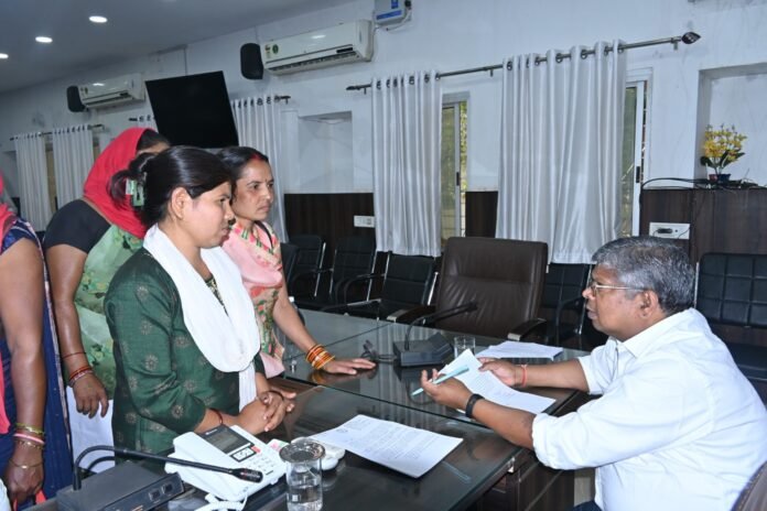 धमतरी| कलेक्टर सुश्री नम्रता गांधी के निर्देश पर अपर कलेक्टर श्री जीआर मरकाम ने आज कलेक्टोरेट में आयोजित जनदर्शन में जिले के दूर-दराज से पहुंचे आवेदकों से आवेदन प्राप्त कर उनकी समस्या, शिकायत और मांग को सुनीं।