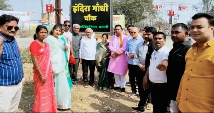 धमतरी | नगर निगम के द्वारा भारत के पूर्व प्रधानमंत्री इंदिरा गांधी जी के जयंती के अवसर पर शहर के अर्जुनी चौक का नामकरण प्रियदर्शनी इंदिरा गाँधी चौक के नाम पर किया गया |
