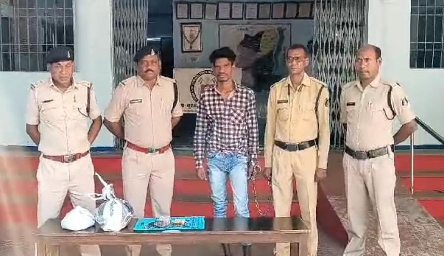 आरोपी का नाम-: इशांत यादव पिता शत्रुघन यादव,उम्र 24 वर्ष,साकीन भरदा,कुरूद,थाना कुरुद,थाना धमतरी जिला धमतरी,(छ.ग.) आरोपियों से जप्ती संपत्ति-: (01) दो सफेद रंग की पॉलीथिन,मादक पदार्थ गाजा कुल वजन 440 ग्राम,बाजार मुल्य के आधार से करीबन 5,000/- रुपये (02) एक सफेद रंग के पॉलीथिन जिसमें Oxmeberg लिखा है जिसके अंदर Spasmo Proxyvon plus कैप्सूल 174 नग,प्रत्येक में 08 नग कैपसूल भरा है कुल 1392 नग कैपसूल कीमती 15451/- रूपये, एवं बिक्री रकम 16,080/- रुपये, कुल जुमला 36,531/- रूपये (03) एक नग बटंची चाकू जप्त किया गया। जब्त कर आरोपी के कृत्य अपराध धारा का पाये जाने से आरोपियों के विरुद्ध आरोपी के विरुद्ध थाना कुरुद में धारा 22(ख)20 (B) एनडीपीएस.एक्ट एवं धारा 25 आर्म्स एक्ट के तहत वैधानिक कार्यवाही की गई। आरोपी को विधिवत गिरफ्तार कर न्यायिक रिमांड पर भेजा जा रहा है। संपूर्ण कार्यवाही में थाना कुरूद उनि.ईश्वर साकार,सउनि.संतोष कोमरा,आर.संतोष ध्रुव, शैलेंद्र बंजारे, रविशंकर कंवर,आर.चा.ओमनारायण सोनवानी की महत्वपूर्ण भूमिका रही।