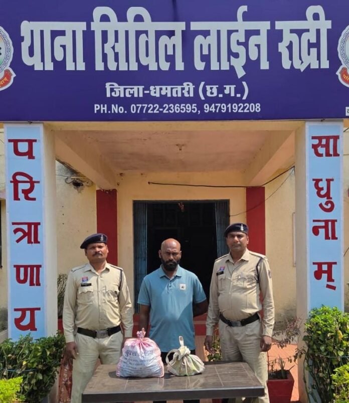 धमतरी | पुलिस अधीक्षक धमतरी के निर्देशानुसार जिले में मादक पदार्थ,अवैध शराब, जुआ एवं अन्य अवैधानिक गतिविधियों के विरुद्ध लगातार सख्त एवं प्रभावी कार्यवाही की जा रही है। इसी क्रम में थाना रूद्री पुलिस को मुखबिर से सूचना प्राप्त हुई कि एक व्यक्ति योगेश ऑटो सेंटर के पास अवैध रूप से शराब परिवहन कर रहा है। सूचना पर तत्काल कार्यवाही करते हुए पुलिस टीम ने रूद्री चौक स्थित योगेश ऑटो सेंटर के पास घेराबंदी की। घेराबंदी के दौरान आरोपी अशोक दास मानिकपुरी को संदिग्ध अवस्था में पकड़ा गया, जिसके कब्जे से बिना वैध दस्तावेज के अवैध रूप से परिवहन की जा रही कुल 34 पौवा देशी शराब बरामद की गई, जिसमें – देशी प्लेन शराब – 22 पौवा (कीमत लगभग 1,760/-रूपये) देशी मसाला शराब – 12 पौवा (कीमत लगभग 1,200/-रूपये) कुल जुमला कीमती 2,960/-रूपये की शराब जप्त की गई। आरोपी के विरुद्ध थाना रूद्री में अपराध क्रमांक 11/26 धारा 34(2) आबकारी एक्ट के तहत अपराध पंजीबद्ध कर विधिवत गिरफ्तार किया गया तथा न्यायिक रिमांड पर जेल भेजा गया। आरोपी का नाम: अशोक दास मानिकपुरी पिता – साहिल दास उम्र – 40 वर्ष निवासी- आनंद पारा, रूद्री, जिला धमतरी (छ.ग.) धमतरी पुलिस द्वारा अवैध गतिविधियों में संलिप्त व्यक्तियों के विरुद्ध आगे भी कठोर कार्यवाही निरंतर जारी रहेगी।