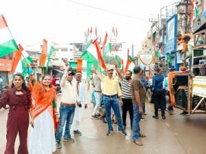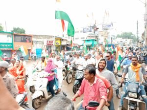 शनिवार को दोपहर 3 बजे दानीटोला स्थित मां शीतला मंदिर में विशेष पूजा अर्चना के बाद डीजे की धुन में भक्ति गीतो के साथ यह तिरंगा बाइक रैली निकली, जो मां विंध्यवासिनी मंदिर से होते हुए ब्रह्म चौक, लक्ष्मी निवास चौक ,अंबेडकर चौक ,रत्नाबांधा चौक ,मकई चौक, सिहावा चौक ,बस स्टैंड मार्ग से होकर वापस घड़ी चौक के रास्ते सदर बाजार होकर मां शीतला माता मंदिर पहुंची। तिरंगा रैली में युवाओं का जोश और उमंग देखते ही बन रहा था ।