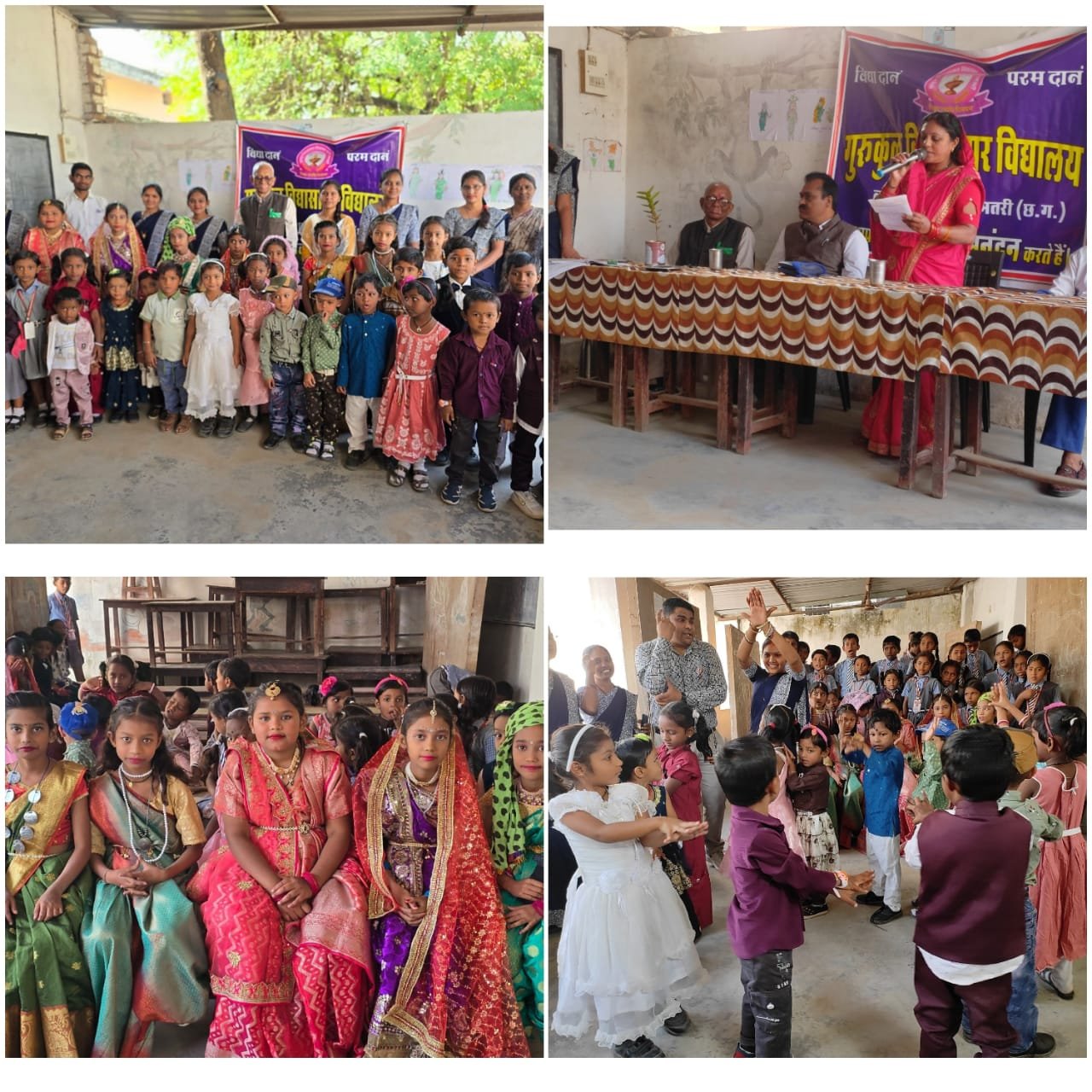 धमतरी | लोहरसी ,धमतरी गुरुकुल विद्यासागर स्कूल लोहरसी जिला धमतरी छत्तीसगढ़ में बाल दिवस का रंगारंग कार्यक्रम का आयोजन किया गया। जिसमें स्कूल के संचालक श्रीमान विनोद कुमार पांडेय जी ने छात्र-छात्राओं को संबोधित करते हुए कहा कि नेहरू जी बच्चों से बहुत स्नेह करते थे। वे चाहते थे कि देश के सभी बच्चे आगे बढ़े क्योंकि आगे देश को संभालने का भार उनके ही कंधों पर आने वाला है। गरीबी और अशिक्षा के कारण आज भी बहुत से बच्चे शिक्षा से वंचित हैं। आप लोग बड़े ही भाग्यशाली हैं जो आप लोगों को शिक्षा ग्रहण करने का अवसर मिला है। आनंद मेला के माध्यम से रोजगार के नए-नए तरीके सीखने का अवसर मिलता है । विद्यालय में आनंद मेला का आयोजन किया गया जिसमें सभी बच्चों ने पहले अपने अपने दुकानों का बजट बनाया, दुकान चलाया,फिर लाभ कमाया। इस प्रकार देश के प्रधानमंत्री माननीय श्री नरेंद्र मोदी जी के आत्मनिर्भर भारत के अभियान के अंतर्गत स्वरोजगार का निर्माण करने का प्रशिक्षण प्राप्त किया। इस उपलब्धि पर मुख्य अतिथि की आसंदी से बच्चों की चहेती श्रीमती विजयलक्ष्मी गंजीर ने खूब सराहना की। उन्होंने विद्यालय को फलदार वृक्ष का पौधा भेंट किया। सभा अध्यक्ष के रूप में श्रीमान अरुण कुमार गंजीर जी ने ऐसे कार्यक्रमों के माध्यम से बच्चों की प्रतिभा उभारने का सशक्त माध्यम बताया। उन्होंने विद्यालय को तीन नग फाइबर चेयर देने की घोषणा की।विद्यालय में खेलकूद के अंतर्गत मेंढक दौड़ ,गोली चम्मच दौड़,बोरा दौड़, रिले रेस, जलेबी दौड़ ,कुर्सी दौड़ 100 मीटर दौड़, फैंसी ड्रेस आदि प्रतियोगिता का आयोजन किया गया। संस्था प्रमुख भारत लाल साहू एवं शिक्षक गण झामीन साहू ,ज्ञानेश्वरी साहू, डिलेश्वरी साहू, खोमेश्वरी साहू, अभिषेक जुर्री, टामेश्वरी कंवर, मनीषा साहू, मिथलेश साहू, ओमीन साहू, गुणिता साहू, सब ने मिलकर सामूहिक नृत्य प्रस्तुत किया। मैडम झामीन साहू ने मंच संचालन किया। मैडम ज्ञानेश्वरी साहू ने धन्यवाद ज्ञापन किया। इस प्रकार 14 नवंबर को बाल दिवस के अवसर पर विद्यालय में विविध कार्यक्रम उल्लास पूर्वक संपन्न हुआ।