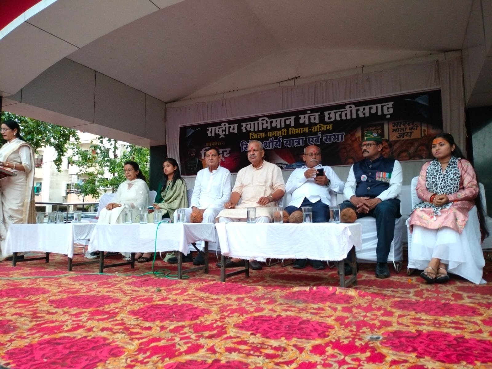 कार्यक्रम में मुख्य रूप से जिला संघचालक श्याम अग्रवाल, कार्यक्रम संयोजक जिला सह संघचालक जितेंद्र यदु, नगर संचालक रामलखन गजेंद्र, सैनिक सेवा परिषद के अध्यक्ष जेपी साहू, सुषमा नंदा, भूमिका साहू, महापौर रामू रोहरा, कविंद्र जैन, चेतन हिन्दूजा, भागवत देवांगन, चित्ररेखा निर्मलकर, चंद्रकला पटेल, संगीता जगताप, नम्रता माला पवार, कल्पना रणसिंह, राघोराव रणसिंह, मोहनराव रणसिंह, शिराेमणिराव घोरपड़े, दीपक ठाकुर, पुरूषोत्तम निषाद, डाकेश्वर साहू, जतिन देवांगन, अविनाश दुबे, जिला कार्यवाह धनेश्वर निर्मलकर, नगर कार्यवाह मोहित साहू, गौरव मगर, भुवन साहू, भूमिका साहू, सुनील यदु, निर्मल बरडिया, राकेश साहू, विनय जैन, पवन गजपाल, अतुल साहू, बेदुराम साहू, राजू साेनकर, राघवेंद्र रणसिंह, योगेंद्र यदु, धरम साहू, हेमचरण साहू, सागर निर्मलकर, योगेश साहू, नगर प्रचार प्रमुख उमेश सिंह बशिष्ट आदि उपस्थित थे। कार्यक्रम का संचालन सरोज देवांगन तथा आभार व्यक्त बीथिका विश्वास ने किया।