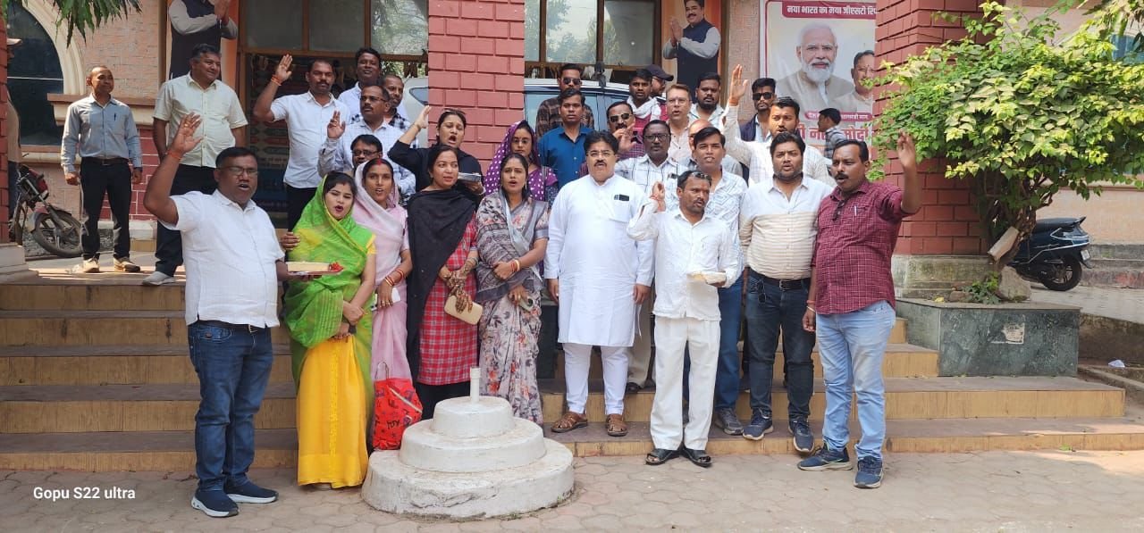 धमतरी | नगर निगम धमतरी परिसर में माननीय उपमुख्यमंत्री श्री अरुण साव जी का जन्मदिन पूरे उत्साह और उमंग के साथ मनाया गया। कार्यक्रम की शुरुआत फटाखे फोड़कर एवं मिठाई वितरण के साथ हुई, जिसमें माहौल खुशनुमा और ऊर्जा से भर गया। इस अवसर पर महापौर श्री रामू रोहरा, सभापति, एमआईसी सदस्य, पार्षदगण, भाजपा पदाधिकारी, तथा निगम के अधिकारी-कर्मचारी बड़ी संख्या में उपस्थित रहे और उन्होंने उपमुख्यमंत्री श्री साव जी के प्रति अपना सम्मान और शुभकामनाएँ व्यक्त कीं। महापौर श्री रामू रोहरा ने कहा कि “श्री अरुण साव जी जनसेवा, सरलता और समर्पण की मिसाल हैं। उनका नेतृत्व प्रदेश के विकास का मार्ग प्रशस्त कर रहा है। हम सभी ईश्वर से प्रार्थना करते हैं कि उन्हें दीर्घायु, स्वास्थ्य और निरंतर ऊर्जा प्रदान हो।”