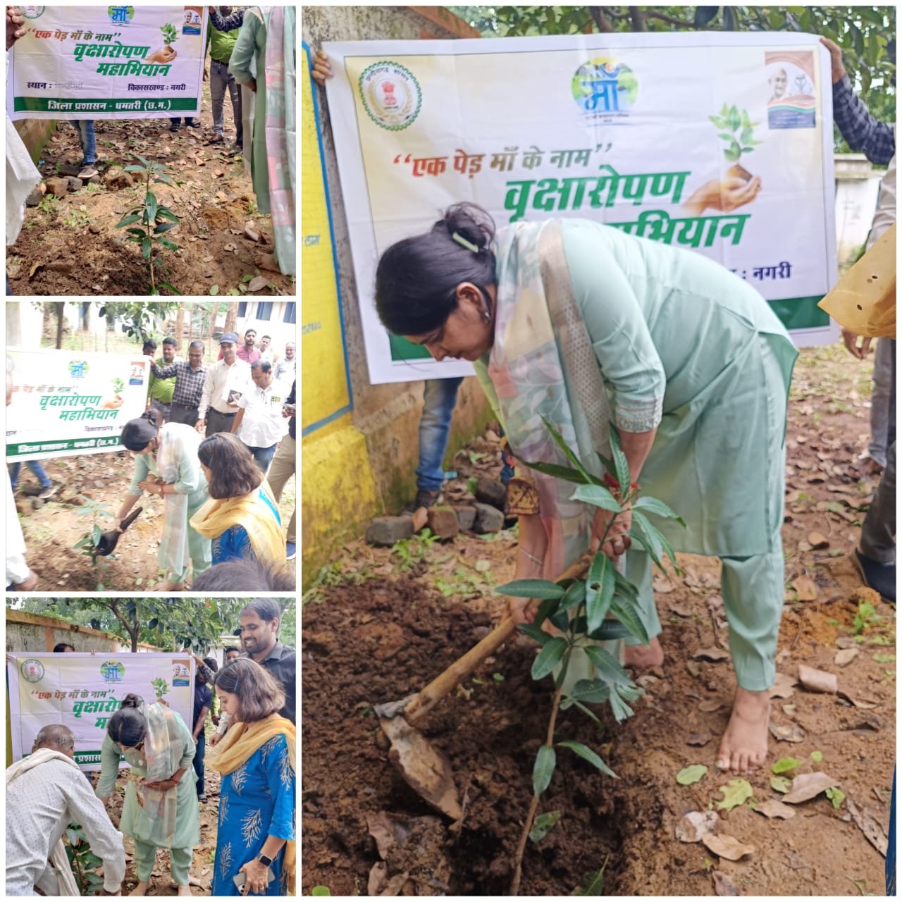 धमतरी | भारत सरकार के ग्रामीण विकास विभाग की संयुक्त सचिव श्रीमती स्वाति शर्मा ने आज “एक पेड़ माँ के नाम” अभियान के तहत ग्राम पिपराहीभर्री स्थित आंगनबाड़ी परिसर में आम का पौधा लगाया। इस अवसर पर कलेक्टर श्री अबिनाश मिश्रा, जिला पंचायत की मुख्य कार्यपालन अधिकारी श्रीमती रोमा श्रीवास्तव सहित अन्य अधिकारीगण भी मौजूद रहे। संयुक्त सचिव ने ग्रामीणजनों से अपील की कि वे भी अपनी मां के सम्मान में एक पौधा अवश्य लगाएं और उसका संरक्षण करें।अधिकारियों ने पौधारोपण के बाद पौधों के संरक्षण और नियमित देखरेख का भी संकल्प लिया।
