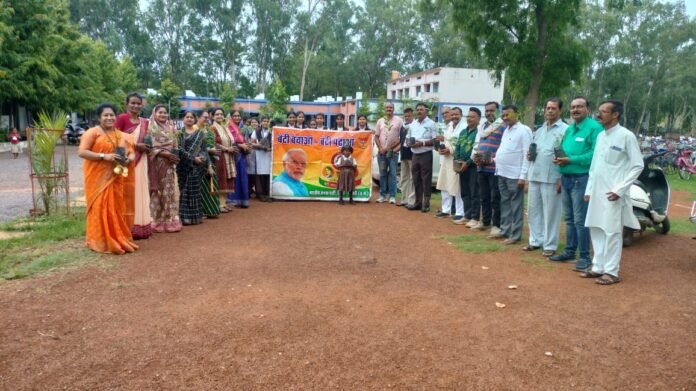 धमतरी |  पेड़ों के बिना रहना अपने जड़ों के बिना रहने के समान है प्रकृति में संतुलन बनाए रखने के लिए प्रत्येक नागरिक को पेड़ लगाने चाहिए यशस्वी प्रधानमंत्री जी के आह्वान पर बेटी बचाओ बेटी पढ़ाओ की टीम के द्वारा रुद्री सरस्वती शिशु मंदिर परिसर में एक पेड़ मां के नाम रोपा गया। प्रकृति का संतुलन कितना बिगड़ चुका है कि हम देख रहे हैं आज कहीं अतिवृष्टि तो कहीं अनावृष्टि की स्थिति है मानव अपनी सुख संसाधन के लिए प्रकृति का दोहन कर लेते हैं पर उसे हरा-भरा बनाए रखने का भी कर्तव्य हमारा ही है ,संपूर्ण विश्व में आज कांक्रीट के जंगल बनते जा रहे हैं पेड़ों को काटकर बस्तियां बसाई जाती है |