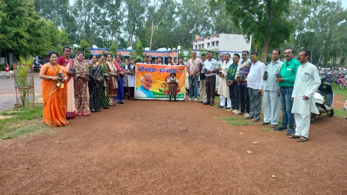सड़के बनाई जाती है यह भी मानव उपयोग के लिए जरूरी है पर हम अपनी आने वाली पीढ़ी के लिए शुद्ध वायु देकर जा सके इसकी भी चिंतन हमें ही करनी है। बिना आहार के इंसान 10 दिन जी सकता है पर बिना वायु के हम 1 मिनट भी जीवित नहीं रह सकते। प्रधानमंत्री जी के आग्रह पर अपनी मां के नाम एक पौधा लगाकर जिस प्रकार मां हमारी परवरिश की है ठीक उसी प्रकार उन पौधों की भी देख भाल हम करें इसी उद्देश्य को लेकर आज पौधारोपण किया गया इस कार्यक्रम में मुख्यतः पूर्व जिला अध्यक्ष प्रदेश कार्य समिति सदस्य ठा शशि पवार जिला महामंत्री कविंद्र जैन झुग्गी झोपड़ी प्रकोष्ठ के प्रदेश संयोजक महेंद्र पंडित वरिष्ठ नेता श्री प्रकाश गोलछा निगम पार्षद श्री राजेंद्र शर्मा किसान मोर्चा जिला महामंत्री रोहिताश मिश्रा बेटी बचाओ बेटी पढ़ाओ की जिला संयोजक डॉ बिथिका बिश्वास सह संयोजक धनीराम सोनकर रुद्री ग्राम पंचायत की सरपंच श्रीमती अनीता यादव श्रीमती सुमिता पंजवानी श्रीमती सरिता यादव आचार्य श्री संतोष साहू जी श्रीमती नमिता सेनश्री मुकेश यादव श्री पिंटू यादव श्रीमती पवित्रा दीवान श्रीमती लता सोनी श्रीमती नीलू रजक श्रीमती डॉली सोनी श्री प्रेम नारायण साहू छविंद्र कुमार सोनी श्रीमती श्वेता पटेल आप सभी के द्वारा पौधा रोपण किया गया।