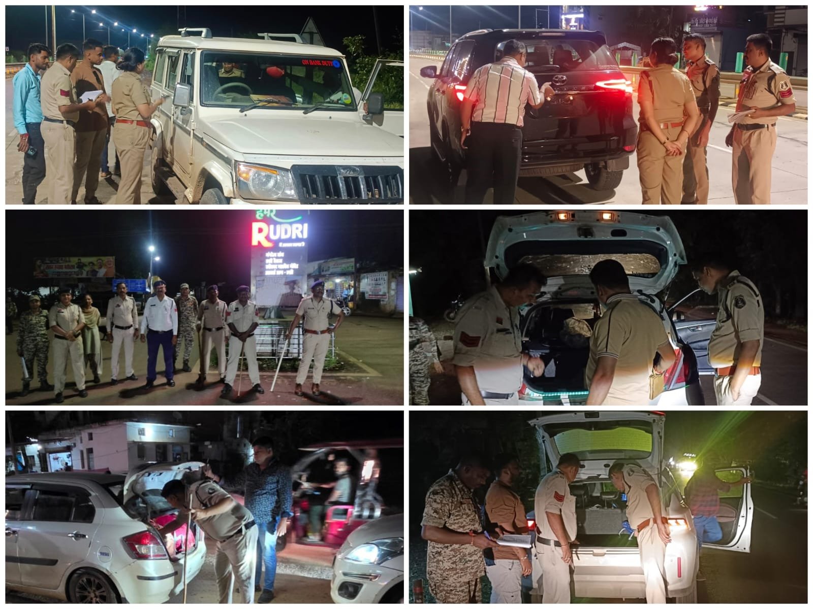 प्रतिदिन रात्रि में बाइक एवं वाहन पेट्रोलिंग। शहर एवं आसपास के नशाखोरी,अड्डेबाजी वाले स्थलों पर कड़ी निगरानी रखकर गश्त कर असामाजिक तत्वों को हटाना। रात्रि 11 बजे तक सभी दुकानें, होटल-ढाबा एवं चाय स्टॉल बंद कराना तथा इसकी नियमित चेकिंग कर जांच करने। मोबाइल चेक पोस्ट (एम.सी.पी.) डीएसपी.सुश्री मीना साहू एवं सुश्री मोनिका मरावी के नेतृत्व में थाना प्रभारी कोतवाली एवं अर्जुनी द्वारा थाना कोतवाली धमतरी एवं थाना अर्जुनी थाना क्षेत्रों में लगातार मोबाइल चेक पोस्ट लगाकर वाहनों की गहन चेकिंग की जा रही है। मोबाइल चेक पोस्ट (एम.सी.पी.) एसडीओपी.श्रीमती रागिनी मिश्रा के नेतृत्व में थाना प्रभारी कुरूद द्वारा अपने थाना क्षेत्रों में लगातार मोबाइल चेक पोस्ट लगाकर वाहनों की गहन चेकिंग की जा रही है।