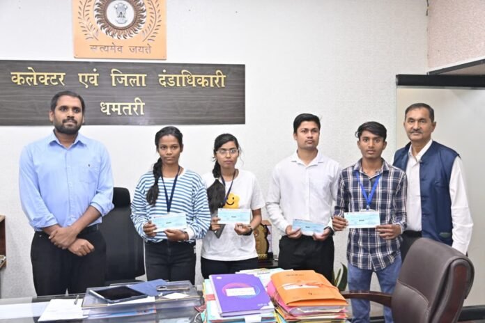 कलेक्टर ने धमतरी जिले के विजेता विद्यार्थियों को पुरस्कृत राशि के चेक वितरण किए, सभी विजेताओं को बधाई दी