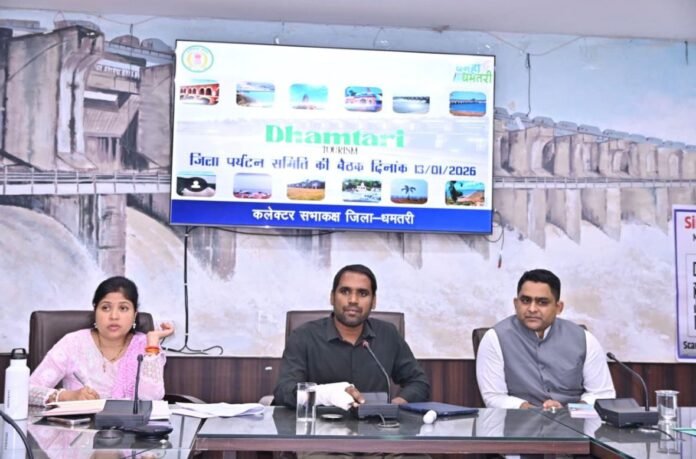 धमतरी | कलेक्टर  की अध्यक्षता में कलेक्ट्रेट सभाकक्ष में जिला पर्यटन समिति की बैठक आयोजित की गई। बैठक में जिले के प्रमुख पर्यटन स्थलों के विकास, पर्यटकों की सुविधा एवं सुरक्षा, तथा पर्यटन को आर्थिक गतिविधि के रूप में सशक्त बनाने पर विस्तार से चर्चा की गई। कलेक्टर श्री मिश्रा ने कहा कि धमतरी जिला प्राकृतिक, धार्मिक, साहसिक, विरासत एवं वैलनेस पर्यटन की अपार संभावनाओं से परिपूर्ण है। इन स्थलों को सुनियोजित रूप से विकसित कर बेहतर सुविधाएं उपलब्ध कराई जाएं, ताकि देश-प्रदेश से अधिक संख्या में पर्यटक जिले की ओर आकर्षित हों। उन्होंने पर्यटन विकास को स्थानीय रोजगार और आजीविका से जोड़ने पर भी जोर दिया। बैठक में कलेक्टर ने पर्यटन स्थलों के प्रभावी प्रचार-प्रसार हेतु डिजिटल मीडिया, पर्यटन पोर्टल एवं विभागीय समन्वय से व्यापक रणनीति तैयार करने के निर्देश दिए। साथ ही पर्यटन स्थलों तक पहुंच मार्ग, पार्किंग, शौचालय, पेयजल, प्रकाश व्यवस्था, संकेतक बोर्ड, बचाव एवं सुरक्षा प्रबंध तथा आपातकालीन स्वास्थ्य सुविधाओं को सुदृढ़ करने पर विशेष ध्यान देने को कहा।गंगरेल बांध के विकास पर विशेष चर्चा: कलेक्टर श्री मिश्रा ने गंगरेल बांध को जिले का प्रमुख पर्यटन केंद्र बताते हुए कहा कि यहां आने वाले पर्यटकों के लिए सभी मूलभूत एवं आधुनिक सुविधाएं उपलब्ध कराना प्राथमिकता है। उन्होंने गंगरेल बांध से माता अंगार मोती मंदिर तक बांध किनारे पाथवे निर्माण के निर्देश दिए, जिससे श्रद्धालुओं एवं सैलानियों को सुरक्षित और सुगम पैदल मार्ग उपलब्ध हो सके। इसके साथ ही गंगरेल बांध परिसर में निर्माणाधीन चौपाटी की दुकानों की निविदा प्रक्रिया शीघ्र पूर्ण कर संचालन प्रारंभ करने के निर्देश भी दिए, जिससे स्थानीय स्व-रोजगार को बढ़ावा मिलेगा।
