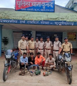 एवं 1 चोरी के मोटर सायकल सुपर स्प्लेंडर बिना नम्बर जिसे नयापारा के जीवन यादव द्वारा चोरी कर करण ध्रुव परखंदा को बेचा था उक्त मोटर सायकल को धारा 41(1+4) द.प्र.स.के तहत जप्त कर आरोपियों को विधिवत गिरफ्तार कर न्यायिक रिमांड पर भेजा गया है।