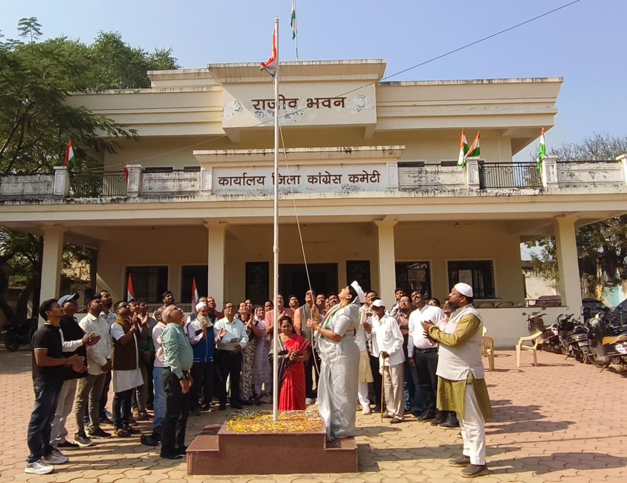 राजीव भवन में ध्वजारोहण, लोकतंत्र व संविधान की रक्षा का लिया गया संकल्प