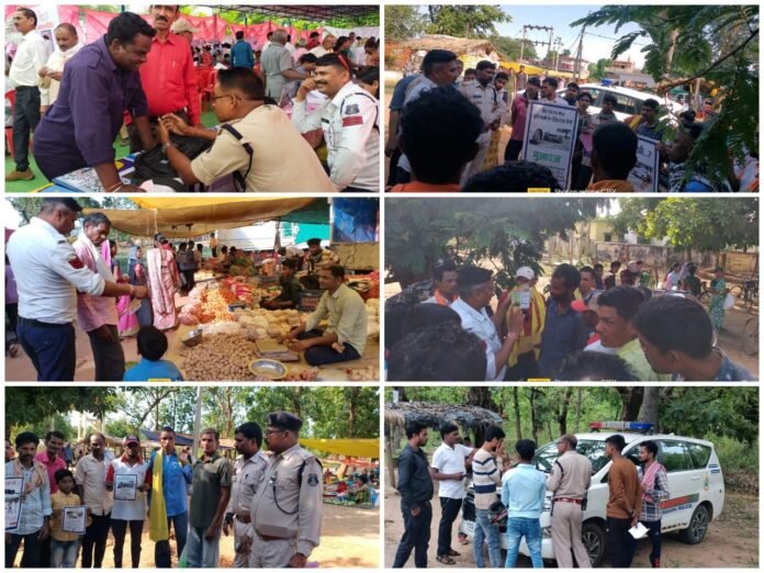 जिले के अंतिम छोर थाना मेचका के सुदूर ग्राम तुमडीबहार के साप्ताहिक बाजार में आये, ग्रामीणों को दिया गया यातायात नियमों की जानकारी, यातायात पुलिस द्वारा लगातार समाधान शिविर में आये लोगों को बताया जा रहा है सड़क सुरक्षा का महत्व
