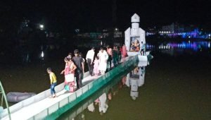 ग्यारह दिवसीय गणेशोत्सव को लेकर धमतरी में धर्ममय वातावरण निर्मित हो गया है। जगह-जगह सार्वजनिक गणेशोत्सव समितियों द्वारा प्रतिमा स्थापित कर सुबह-शाम विशेष आराधना कर रहे हैं। शहर में एक ऐसी भी उत्सव समिति हैं, जो तालाब में प्रतिमा स्थापित कर हर साल नयनाभिराम झांकी सजाते हैं। इस साल भी आमापारा के बनिया तालाब में सत्यम गणेशोत्सव समिति द्वारा तालाब में भगवान श्रीगणेश जी स्थापित की है। तालाब के किनारे से करीब 65 फीट दूर पानी में स्टेज सजाकर चन्द्रयान की झांकी सजाई है। करीब 15 फीट ऊंचे तथा 7 फीट चौड़ाई वाले यह चन्द्रयान की झांकी देखते ही बन रही है। इसे देखने के लिए शहर समेत दूर-दराज गांवों से श्रद्धालु पहुंच रहे हैं। गौरतलब है कि यहां सत्यम गणेशोत्सव समिति की ओर से पिछले 16 सालों से बनिया तालाब के 12 फीट गहरे पानी में गणेशजी स्थापित करते आ रहे हैं। समिति के अध्यक्ष शैलेन्द्र नाग, उमेश नाग, दिनेश पटेल, पप्पू पटेल, विकास साहू, जीवेश साहू ने बताया कि इसके पहले शहर की ज्वलंत समस्या को देखते हुए बाइपास सड़क की झांकी बनाई थी। इसके अलावा स्वच्छता को लेकर जागरूक करने एक कदम स्वच्छता की ओर झांकी सजाया था। पीएम आवास, समुद्र मंथन, रामसेतु की झांकी सजा चुके है।