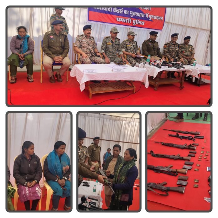 लगातार धमतरी पुलिस, डीआरजी, राज्य बलों एवं सीआरपीएफ द्वारा चलाए जा रहे नक्सल विरोधी अभियानों, दबाव तथा शासन की आत्मसमर्पण एवं पुनर्वास नीति से प्रभावित होकर इन माओवादियों ने हिंसा एवं विनाश का मार्ग त्यागते हुए मुख्यधारा में लौटने का निर्णय लिया।