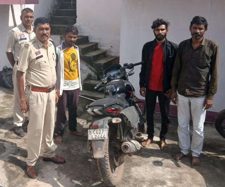 धमतरी | एसपी.धमतरी के निर्देश पर धमतरी पुलिस थाना अर्जुनी द्वारा थाना क्षेत्रांतर्गत हुई वाहन चोरी की गंभीर घटना को गंभीरता से लेते हुए त्वरित कार्यवाही की गई। दिनांक 29.07.2025 को प्रार्थी कुश कुमार साहू, उम्र 27 वर्ष, निवासी भोथली, थाना अर्जुनी द्वारा रिपोर्ट दर्ज कराई गई कि उन्होंने अपनी बजाज पल्सर मोटरसायकल क्रमांक CG 27 L 2444 को छत्तीसगढ़ राज्य ग्रामीण बैंक अर्जुनी के सामने खड़ा कर अपने कार्यालय चले गए थे। जब वे शाम लगभग 5 बजे लौटे, तो बाइक वहां से गायब थी। थाना अर्जुनी में अपराध क्रमांक 107/25 धारा 303(2), 3, 5 बी.एन.एस. के अंतर्गत अपराध पंजीबद्ध कर विवेचना प्रारंभ की गई। थाना प्रभारी अर्जुनी के नेतृत्व में पुलिस टीम गठित कर बैंक परिसर के आसपास के सीसीटीवी फुटेज, तकनीकी साक्ष्य और मुखबिर की सूचना के आधार पर संदेही मोहन लाल यादव तक पहुंच बनाई गई। पूछताछ में मोहन लाल ने बाइक चोरी की घटना को दो अन्य साथियों अजयदास मानिकपुरी एवं मनोज़ कुमार देशमुख के साथ मिलकर अंजाम देना स्वीकार किया। आरोपियों के मोमोरेंडम कथन के आधार पर चोरी की गई पल्सर मोटरसायकल को मोहन लाल के घर से बरामद कर जब्त किया गया। पुलिस द्वारा तीनों आरोपियों को विधिवत गिरफ्तार कर न्यायिक रिमांड पर जेल भेजा गया है।
