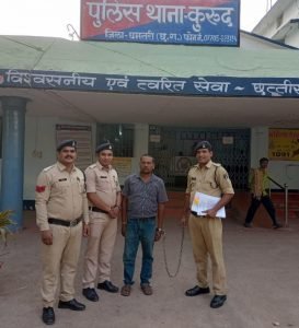 जिस पर पुलिस अधीक्षक प्रशांत ठाकुर द्वारा त्वरित कार्यवाही के निर्देश पर अतिरिक्त पुलिस अधीक्षक श्रीमती निवेदिता पॉल के मार्गदर्शन में एवं अनु.अधिकारी पुलिस कुरूद श्री अभिषेक केशरी के नेतृत्व में थाना प्रभारी कुरूद निरी.उमेंद्र टंडन द्वारा उक्त मामले में विवेचना के दौरान आरोपी के पतासाजी के लिए पुलिस टीम भेजा गया। आरोपी के ग्राम-सोढ,थाना-बेरला जिला-बेमेतरा जाकर आरोपी भूषण तुर्काने पिता विश्वनाथ तुर्काने का पता साजी किया गया, जो गांव में बाजार के पास से आरोपी भूषण तुर्काने को हिरासत में लेकर थाना लाकर गवाहो के समक्ष मेमोरण्डम कथन लिया जो अपने कथन में जुर्म स्वीकार करने पर आरोपी को दिनांक 05.05-22 को गिरफ्तार कर विधिवत गिरफ्तार कर न्यायिक रिमांड पर भेजा गया।