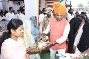 धमतरी | राष्ट्रीय पर्व स्वतंत्रता दिवस के मौके पर नक्सल मोर्चों में मुठभेड़ के दौरान शहीद हुए जिले के 41 पुलिस जवानों के परिजनों को मुख्य समारोह स्थल डॉ.शोभाराम देवांगन स्कूल के एकलव्य खेल परिसर में मुख्य अतिथि विधायक कुरूद अजय चन्द्राकर द्वारा शॉल एवं श्रीफल प्रदाय कर सम्मानित किया गया। इनमें नगरी तहसील के फरसियां के शहीद आरक्षक रतन लाल मरकाम, बाजार पारा नगरी के प्यारेलाल सोम, ग्राम कौहाबाहरा के निर्मल कुमार नेताम और भीतररास के शहीद आरक्षक नवल किशोर शांडिल्य के परिजनों का सम्मान किया गया। इसी तरह धमतरी तहसील के संबलपुर के शहीद आरक्षक नारायण सोरी, सांकरा के नोहरू राम नेताम, गागरा के संतोष कुमार नेताम, परेवाडीह के टिकेश्वर कुमार ध्रुव, श्यामतराई के रामेश्वर ध्रुव, जल विहार कालोनी रूद्री के तिला राम ठाकुर, दुलारी नगर रूद्री के खगेन्द्र कश्यप, ग्राम विश्रामपुर के शहीद आरक्षक भूषण मंडावी और ग्राम रावनसिंघी के शहीद आरक्षक वासुदेव ध्रुव के परिजनों का सम्मान किया गया।