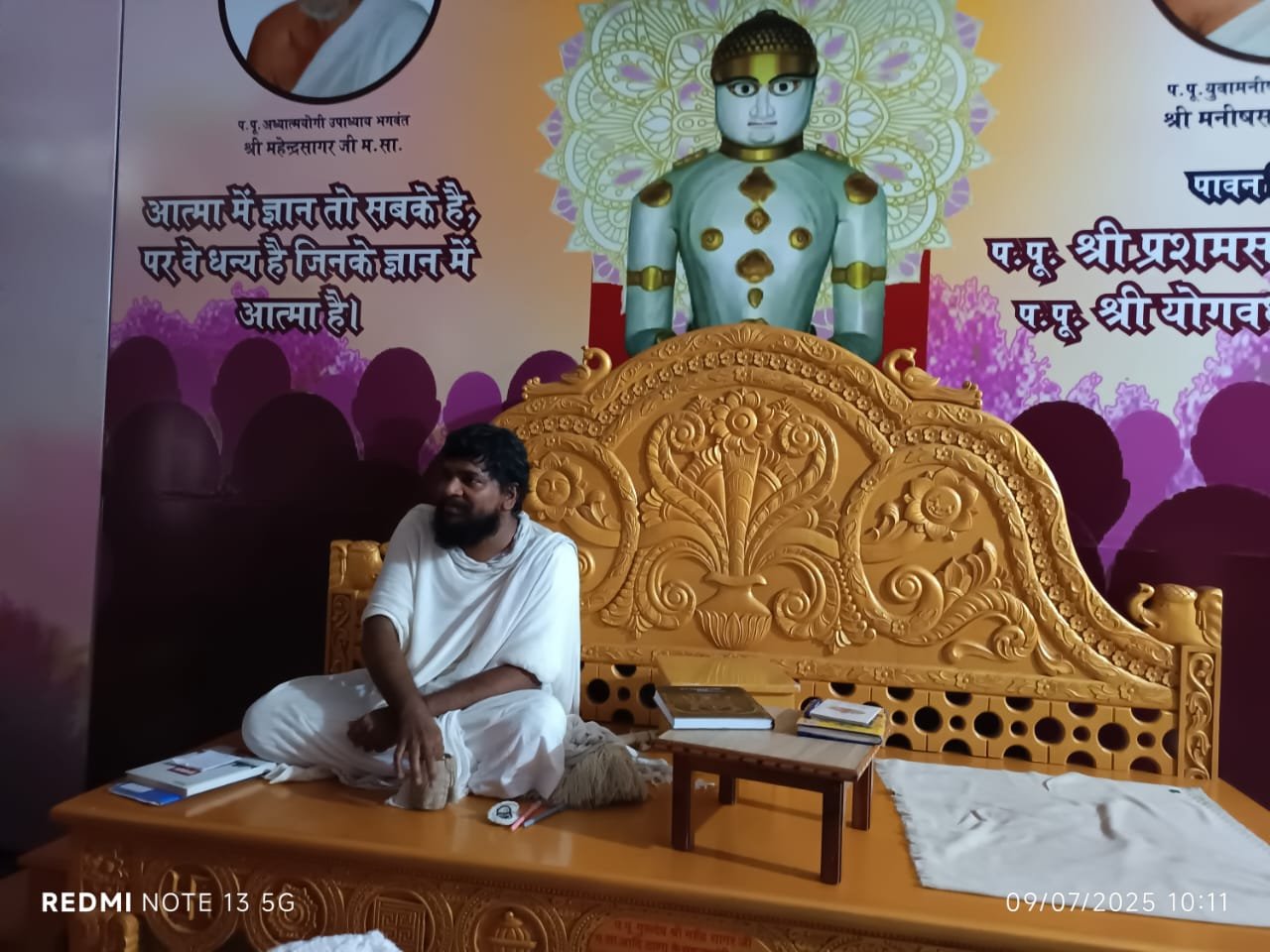 परम पूज्य उपाध्याय प्रवर अध्यात्मयोगी महेंद्र सागर जी महाराज साहेब परम पूज्य उपाध्याय प्रवर युवामनीषी स्वाध्याय प्रेमी मनीष सागर जी महाराज साहेब के सुशिष्य परम पूज्य प्रशम सागर जी महाराज साहेब ने प्रवचन के माध्यम से फरमाया कि आज से चातुर्मास का प्रारंभ हो रहा है। हमें भी आत्म के लिए प्रयास प्रारंभ करना है। उससे पहले हमें एक सच्चा श्रावक बनने का प्रयास करना है। जीवन में सदैव, सुगुरु, सुधर्म को मानने वाला श्रावक कहलाता है। कर्म को उदय को बदलने की क्षमता किसी के पास नहीं है। इसलिए हमें सोच समझकर कर्म का बंध करना चाहिए। आज हम हंस हंस कर कर्म बांधते है और रो रो कर उस कर्म का भुगतान करना पड़ता है।