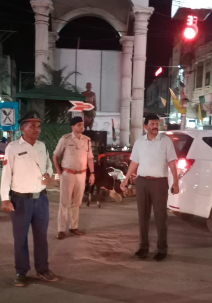पुलिस अधीक्षक धमतरी द्वारा मकई चौक पहुचकर किये यातायात व्यवस्था का निरीक्षण बाद किए थाना सिटी कोतवाली का आकस्मिक निरीक्षण