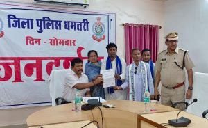 धमतरी | जनदर्शन कार्यक्रम में ग्राम कुरमातराई में हुई आत्महत्या के प्रकरण में निष्पक्ष जॉच करने बाबत आवेदन पत्र बहुजन समाज पार्टी धमतरी,पोलिटेक्निक कॉलेज,सुरक्षा कर्मी का पारिश्रमिक दिलाने बाबत पत्र,नौकरी लगाने के नाम पर पैसा लिए जाने के संबंध में,न्याय दिलाने बाबत आवेदन,दुर्घटना में मृत्यु पर अनुदान राशि दिलाने आवेदन जो थाना गुरुर का होने से पुलिस अधीक्षक द्वारा तत्काल थाना गुरुर से बात कर गुरुर थाने भेजा गया,समस्त ग्राम वासी तिर्रा द्वारा एक शिक्षक को बर्खास्त करने कि मांग के संबंध में शिकायत पत्र,मृतिका के मृत्यु के जॉच के संबंध में आवेदन पत्र कुल 09 शिकायत प्राप्त हुए,