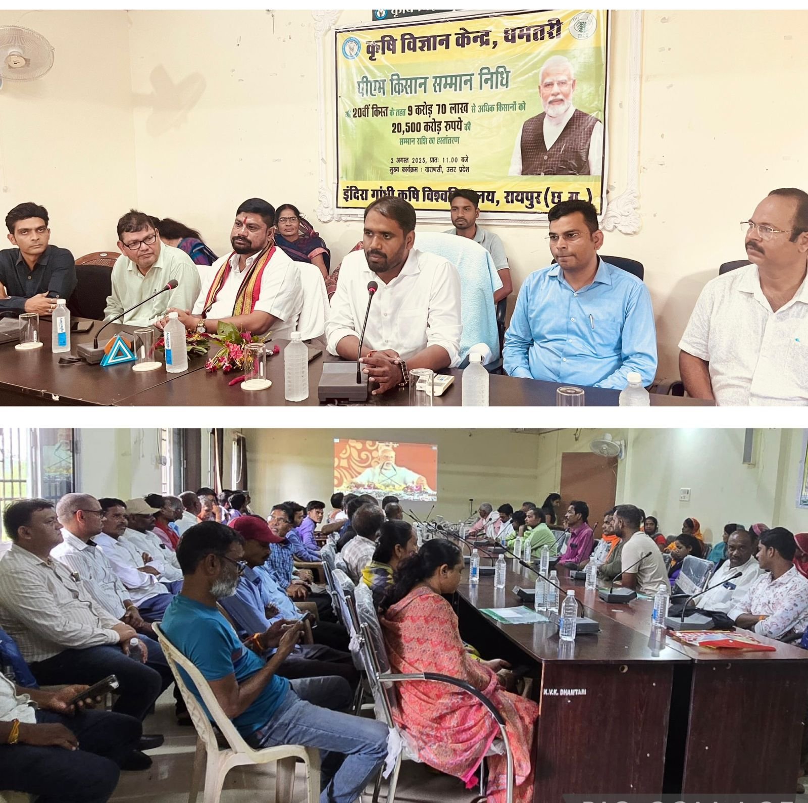 धमतरी | रक्षा बंधन से पहले किसानों को बड़ी सौगात मिली । प्रधानमंत्री किसान सम्मान निधि योजना के अंतर्गत जिले के 99,677 पात्र कृषकों को डीबीटी (डायरेक्ट बेनिफिट ट्रांसफर) माध्यम से 20वीं किस्त की राशि अंतरण बीते शनिवार को हुआ । प्रधान मंत्री श्री नरेंद्र मोदी ने वाराणसी से डायरेक्ट बैंक ट्रांसफर (DBT) के जरिए देश के किसानों को 20500 करोड़ रुपये की राशि ट्रांसफर की। यह आर्थिक सहायता किसानों को हर चार महीने में दी जाती है, ताकि वे खेती-किसानी से जुड़ी जरूरतों को बेहतर ढंग से पूरा कर सकें। अगर आपने भी योजना के तहत रजिस्ट्रेशन कराया है, तो जानें क्या आपका नाम लाभार्थी सूची में है और किस तरह आप भुगतान की स्थिति चेक कर सकते हैं। प्रधानमंत्री श्री नरेन्द्र मोदी के सीधा प्रसारण कार्यक्रम कृषि विज्ञान केन्द्र, धमतरी में आयोजित किया गया। प्रधानमंत्री श्री मोदी ने देशभर के किसानों को संबोधित करते हुए उनकी आर्थिक सशक्तिकरण की दिशा में सरकार की प्रतिबद्धता दोहराई। उप संचालक कृषि श्री मोनेश साहू ने बताया कि जिले के कृषकों के बैंक खातों में कुल ₹22.02 करोड़ की राशि अंतरण से कृषक समुदाय में उत्साह और प्रसन्नता का वातावरण देखने को मिला। यह सहायता खरीफ सीजन में बीज, उर्वरक एवं कीटनाशक जैसी कृषि आदान सामग्रियों की खरीदी में सहायक सिद्ध होगी। जिला स्तरीय कार्यक्रम में जनपद पंचायत धमतरी की कृषि स्थायी समिति के सदस्य श्री अग्रवाल साहू मुख्य अतिथि के रूप में उपस्थित रहे। कलेक्टर श्री अभिनाश मिश्रा, कृषक,कृषि विज्ञान केन्द्र के वैज्ञानिकगण एवं कृषि विभाग के अधिकारी/कर्मचारी भी कार्यक्रम में शामिल हुए। कार्यक्रम का सीधा प्रसारण जिले के सभी विकासखण्डों में भी आयोजित किया गया ।विकासखण्ड कुरूद में मुख्य अतिथि जनपद पंचायत अध्यक्ष श्रीमती गितेश्वरी साहू एवं नगर पंचायत की श्रीमती ज्योति भानु चंद्राकर रहीं।विकासखण्ड मगरलोड में जिला पंचायत की कृषि स्थायी समिति के सभापति श्री टीकाराम कंवर ने सहभागिता की वही विकासखण्ड नगरी में कृषि उपज मंडी में आयोजित कार्यक्रम में जनपद अध्यक्ष श्री महेश गोटा, उपाध्यक्ष श्री हृदय साहू सहित अनेक जनप्रतिनिधि उपस्थित रहे।ग्राम पंचायत स्तर पर भी आयोजित कार्यक्रमों में सैकड़ों की संख्या में कृषक, सरपंच, जनप्रतिनिधि तथा कृषि विभाग के मैदानी अमले ने भाग लिया और किसानों को योजना की जानकारी दी।