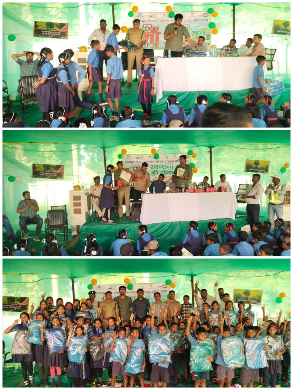 धमतरी | पुलिस अधीक्षक के निर्देशन में आज दिनांक 02/10/2024 को थाना प्रभारी दुगली एवं स्टॉफ द्वारा ग्राम बेधवापथरा के प्राथमिक एवं मिडिल स्कूल के बच्चों के साथ स्वच्छता अभियान चलाया गया। स्वच्छता अभियान के तहत ग्राम बेधवापथरा के प्राथमिक, मिडिल स्कूल के बच्चो को पर्यावरण, पेड़ पौधों का हमारे जीवन में महत्व,ट्रैफिक नियम, ग्रामवासी व दिलीप बिल्डकॉन लिमिटेड के कर्मचारियों के सहयोग से एक पेड़ मां के नाम एवं स्वच्छता जागरूकता कार्यक्रम चलाया गया। स्वच्छता अभियान के तहत विद्यालय के बच्चों को स्वच्छता अभियान की थीम पर चित्रकारी,पेटिंग, निबंध लेखन, स्लोगन की प्रतियोगिता ली गई। प्रतियोगिता में अच्छे पेंटिंग एवं चित्रकारी निबंध लेखन,स्लोगन में उत्कृष्ठ प्रदर्शन करने वाले छात्रों को ईनाम वितरण कर किया गया पुरुस्कृत किया गया।