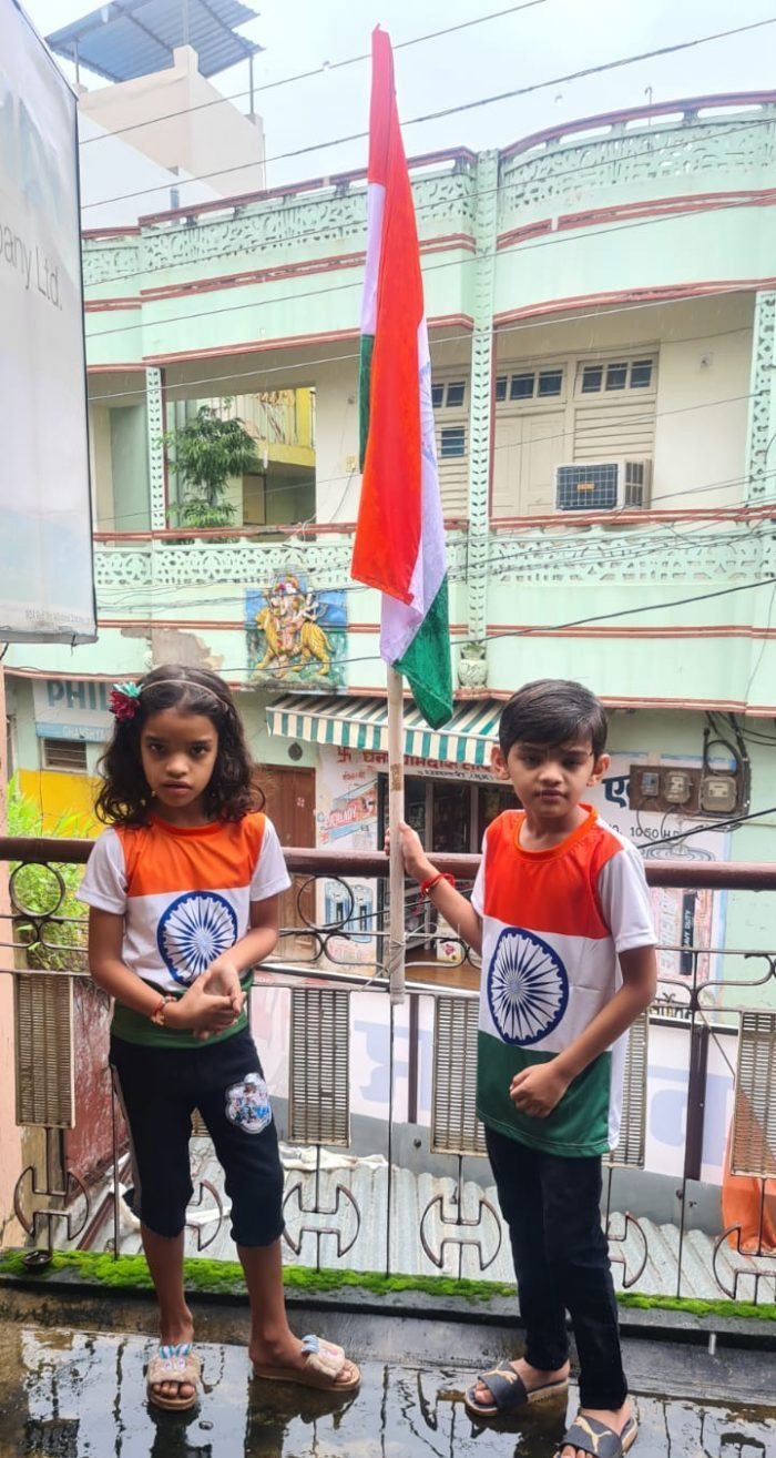 जिसमें छोटे-छोटे बच्चे भी आजादी के महत्व से परिचित हो रहे है। इसी कड़ी में देशप्रेम से प्रेरित होकर आमापारा निवासी आशीष मिन्नी के पुत्र भव्य मिन्नी, पुत्री पाखी मिन्नी ने निवास में शान से तिरंगा फहराया।