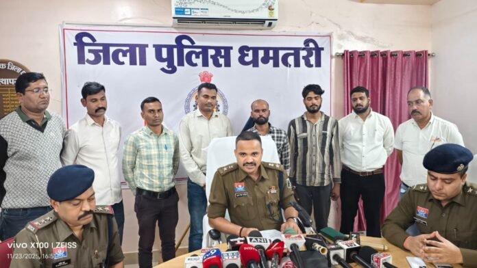 बरड़िया ज्वेलर्स गोलीकांड एवं डकैती प्रयास का धमतरी पुलिस ने किया खुलासा, धमतरी पुलिस की सूझबूझ और निर्णायक कदम-दो कुख्यात अंतरराज्यीय आरोपी गिरफ्तार, सैकड़ों CCTV फुटेज, तकनीकी विश्लेषण और ट्रैवल रूट ट्रेस कर खोला गया मामला, आरोपियों ने पहले की थी रेकी – पिस्टल से वार कर भागे थे आरोपी, गोवा, नागपुर, रायगढ़ तक पुलिस टीमों ने किया पीछा – एयर पिस्टल व उनके छर्रे बरामद