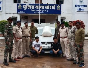 धमतरी/बोराई | जिस पर अति.पुलिस अधीक्षक श्रीमती मेघा टेंभुरकर साहू के मार्गदर्शन में एसडीओपी.नगरी मयक रणसिंह , डीएसपी. नक्सल आपरेशन श्री आर० के० मिश्रा के नेतृत्व में थाना प्रभारी श्री युगलकिशोर नाग द्वारा 24 अगस्त को नाकाबंदी पाईंट एवं जाँच की कार्यवाही की जा रही थी तभी उडिसा के तरफ से आते एक सफेद रंग की VOLKSWAGEN VENTO TDI कार क्रमांक HR 51 AU 5832 को थाना बोराई के सामने बैरियर नाका के पास संदेह के आधार पर रोककर चेक किया गया,जिसमें दो व्यक्ति बैठे मिले उक्त दोनों व्यक्ति से पुछताछ के दौरान उन दोनों की गतिविधी संदिग्ध लगी तब उनका नाम पूछने पर अपना-अपना नाम-:01 मुकर्रम खान उर्फ पुत्तनखान उम्र 30 वर्ष साकीन-शमसाद कालोनी खड़ोमें,थाना-टिलामोड़ चौकी शिकंदरपुर, जिला-गाजियाबाद (उ०प्र०) 02. गोल्डी चौधरी पिता यदकरण सिंह उम्र 38 वर्ष साकीन ई०194 गली नंबर 03 बेस्ट विनोद नगर सकरपुर, थाना-सकरपुर, दिल्ली का होना बताये कार की तलाशी लेने पर कार के पीछे डिक्की के अंदर (मनोउत्तेजक) मादक पदार्थ गाजा को बड़ी सफाई से पैककर छिपाकर रखा गया था।