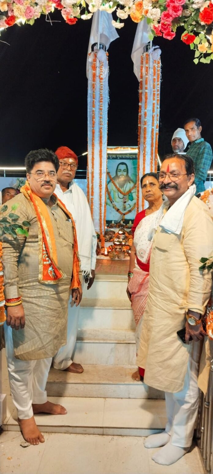 धमतरी | मकेश्वर वार्ड में आयोजित जोड़ा जैतखंभ पालो (ध्वज चढ़ाना) उत्सव श्रद्धा एवं भक्ति भाव के साथ सम्पन्न हुआ। इस अवसर पर नगर निगम धमतरी के माननीय महापौर रामू रोहरा कार्यक्रम में शामिल हुए तथा परम पूज्य गुरु बाबा घासीदास जी की विधिवत पूजा-अर्चना कर आशीर्वाद प्राप्त किया। महापौर श्री रोहरा ने उपस्थित जनसमूह को संबोधित करते हुए कहा कि गुरु बाबा घासीदास जी ने सत्य, अहिंसा, समानता और मानवता का संदेश दिया है। उनके बताए मार्ग पर चलकर समाज में समरसता और भाईचारे को बढ़ावा देना ही सच्ची श्रद्धांजलि है। उन्होंने कहा कि वे गुरु बाबा के संदेश को आत्मसात करते हुए जनसेवा के कार्यों में निरंतर जुटे हुए हैं और समाज के प्रत्येक वर्ग के विकास के लिए प्रतिबद्ध हैं। कार्यक्रम में धार्मिक अनुष्ठान, जैतखंभ पर ध्वज चढ़ाने की परंपरा तथा भजन-कीर्तन का आयोजन किया गया, जिसमें बड़ी संख्या में वार्डवासियों ने उत्साहपूर्वक भाग लिया। वातावरण पूरी तरह भक्ति और श्रद्धा से ओत-प्रोत रहा। इस अवसर पर महेंद्र पंडित, पार्षद आशा नंदू लोधी, दयाराम लहरे, अनुसूचित जाति मोर्चा मंडल अध्यक्ष प्रकाश लहरे, सुशीला, गेंदा बाई, मालती, प्रीति जांगड़े, सोनिया सहित बड़ी संख्या में वार्डवासी उपस्थित रहे।