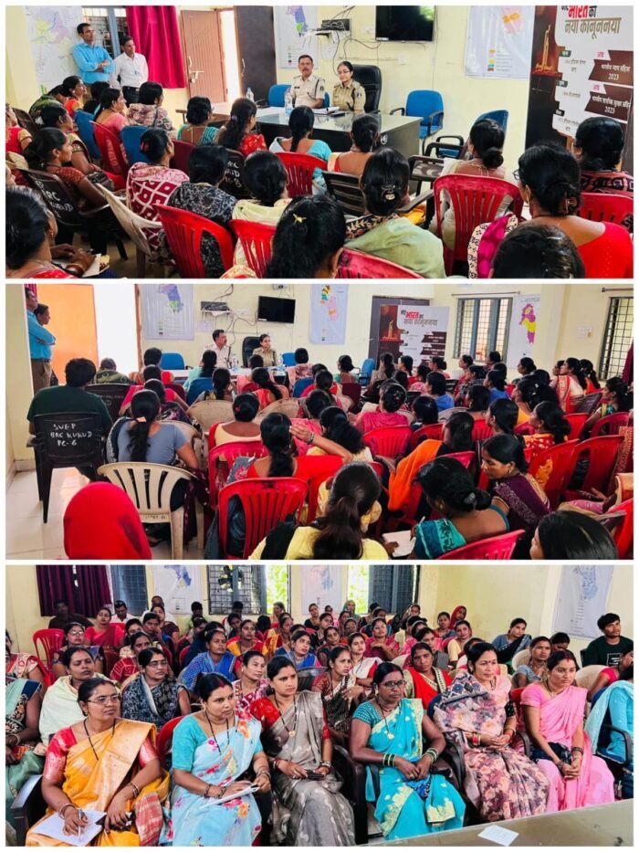 नवीन कानून कीअवश्यकता एवं अपरिहार्यता के सम्बन्ध में जानकारी दिया गया। जिसमे उन्होंने नवीन आपराधिक कानूनों में जोड़े गए नई धाराओं, पुराने कानून से हटाई गई धाराओं एवं आवश्यक परिवर्तनो की विस्तृत रूप से जानकारी दी। एसडीओपी. कुरुद श्रीमती रागिनी मिश्रा ने अपने व्याख्यान में बताया कि नए कानून हमारे देश की विधिक प्रणाली को आधुनिक, समसामयिक और प्रभावी बनाने की दिशा में महत्वपूर्ण कदम हैं। इन संहिताओं के माध्यम से न्यायिक प्रक्रिया में पारदर्शिता, त्वरितता और निष्पक्षता सुनिश्चित की जा सकती है। इनकी आवश्यकता और अपरिहार्यता स्पष्ट है, क्योंकि यह न केवल कानून के शासन को मजबूत बनाती हैं बल्कि समाज में न्याय, सुरक्षा और विकास को भी प्रोत्साहित करती हैं। नए कानून न्याय को सरल बनाएंगे लोगों को कानूनी रूप से सशक्त बनाया जाएगा। कानूनों के माध्यम से नागरिकों के अधिकारों की रक्षा और अपराधों की रोकथाम में महत्वपूर्ण सुधार किए गए हैं। महिला सुरक्षा, बच्चों की सुरक्षा, लैंगिक समानता, हत्या का प्रयास, संगठित अपराध के संबंध में बारीकी से जानकारी देकर उनकी सजा के संबंध में बताया गया। उक्त जन जागरूकता कार्यशाला में उप पुलिस अधीक्षक श्रीमती रागिनी मिश्रा,थाना प्रभारी कुरुद निरी.अरुण साहू,पूरे कुरुद ब्लॉक के (CLF) CLF)कलस्टर लेवल फेडरेशन के महिलाएं अधिक संख्या में उपस्थित रहे।