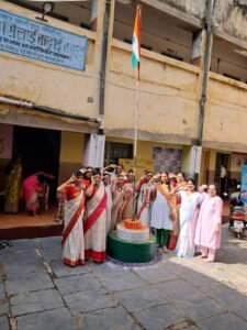 हमारी महिला समाज के सदस्यों नलिनी सोनी, चंचल लुंकड़, कंचन लुंकड़, कामिनी कौशिक, गायत्री साहू, स्वाती बल्लाल, शकुंतला साहू, शांति दामा, मीनल गोलछा, मोना शाह ने झंडे को सलामी दी और स्वतंत्रता को अखंड रखने की शपथ ली और सब महिलाओं ने गमले में मां के नाम का पौधा भी लगाया और सेव बूंदी का वितरण किया।