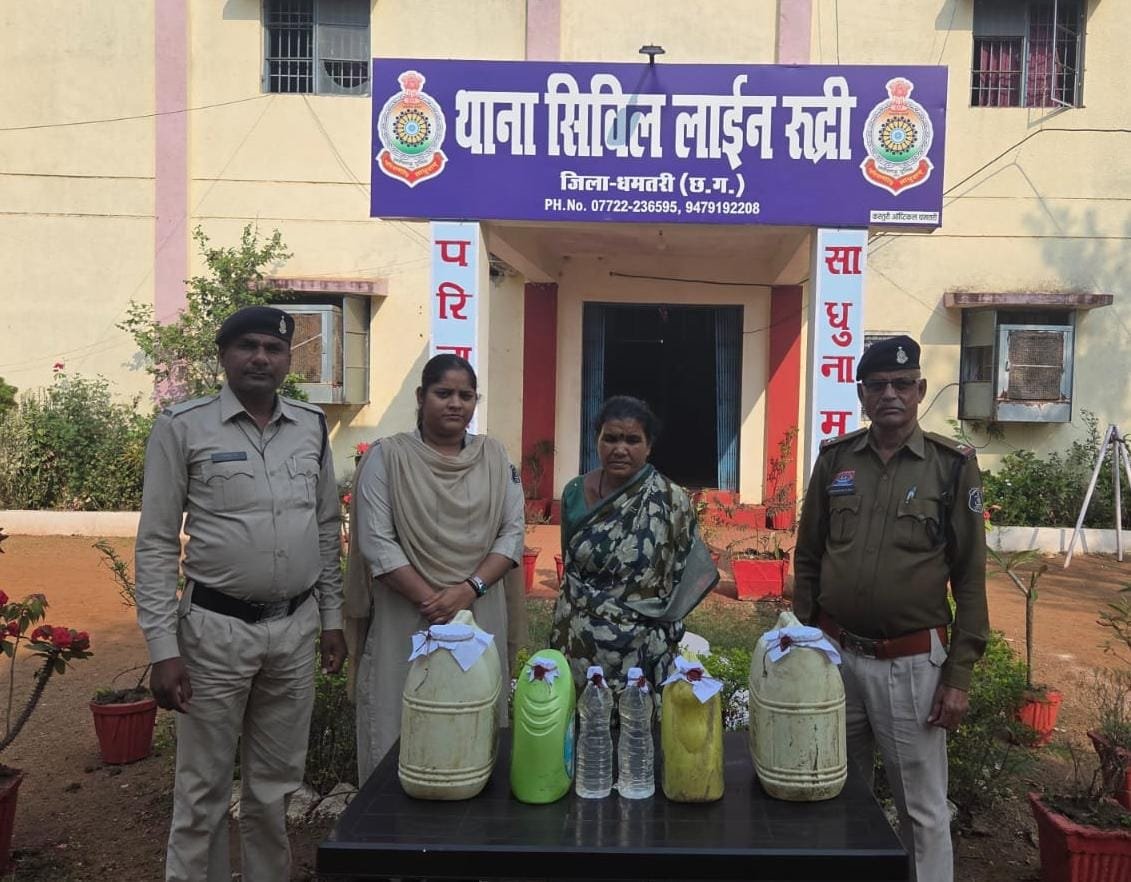 थाना रूद्री पुलिस ने ग्राम सियारपारा में दबिश देकर महिला के कब्जे से 42 लीटर देशी महुआ शराब कीमती 8400/-रूपये किया जप्त , आबकारी अधिनियम की धारा 34(2) के तहत अपराध दर्ज, आरोपिया को गिरफ्तार कर न्यायिक रिमांड पर भेजा गया जेल, अवैध शराब के विरुद्ध धमतरी पुलिस की लगातार सख्त एवं प्रभावी कार्यवाही जारी