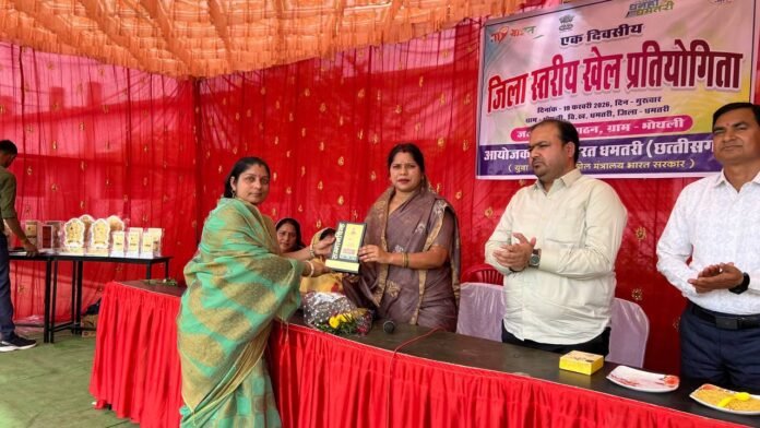 मेरा युवा भारत धमतरी के तत्वावधान में ग्राम भोथली में जिला स्तरीय खेल प्रतियोगिता सम्पन्न, मुख्य अतिथि के रूप भाजपा प्रदेश उपाध्यक्ष रंजना साहू हुई शामिल