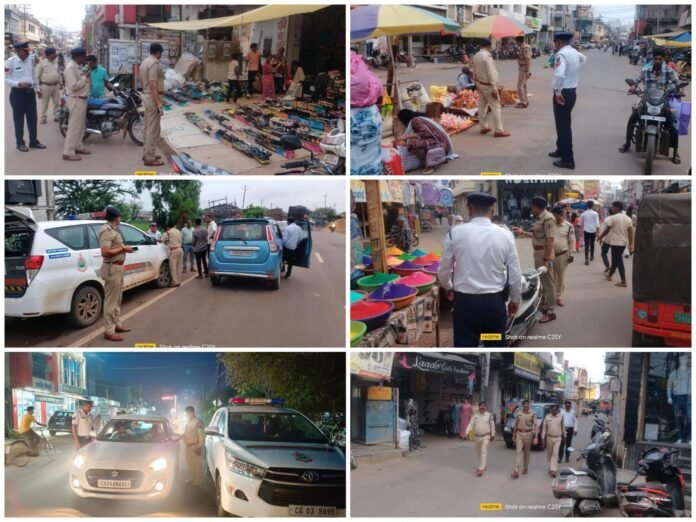 धमतरी पुलिस,ट्रैफिक डीएसपी. द्वारा सदर मार्ग में यातायात व्यवस्था बनाने हमराह स्टॉफ के पैदल पेट्रोलिंग कर किये यातायात व्यवस्थित, यातायात नियमों का उल्लंघन करने वाले वाहन चालकों को यातायात नियमों का पालन कराने इंटरसेप्टर वाहन के माध्यम से की जा रही है, चालानी कार्यवाही