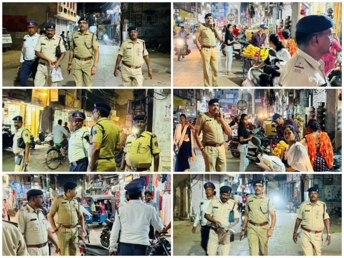 धमतरी | उप पुलिस अधीक्षक यातायात मणीशंकर चन्द्रा द्वारा शहर के सदर मार्ग में सुव्यवस्थित यातायात बनाये जाने हेतु हमराह स्टॉफ के घड़ी चौक से रामबाग तक पैदल पेट्रोलिंग करते हुए यातायात व्यवस्थित किया गया। सामान रोड में निकालकर व्यवसाय करने वाले दुकानदारों को सामान अंदर करवाया गया, बेतरतीब एवं नो पार्किंग में खड़े 06 वाहनों पर कार्यवाही कर पार्किंग में वाहन खड़े करने समझाईश दिया गया।