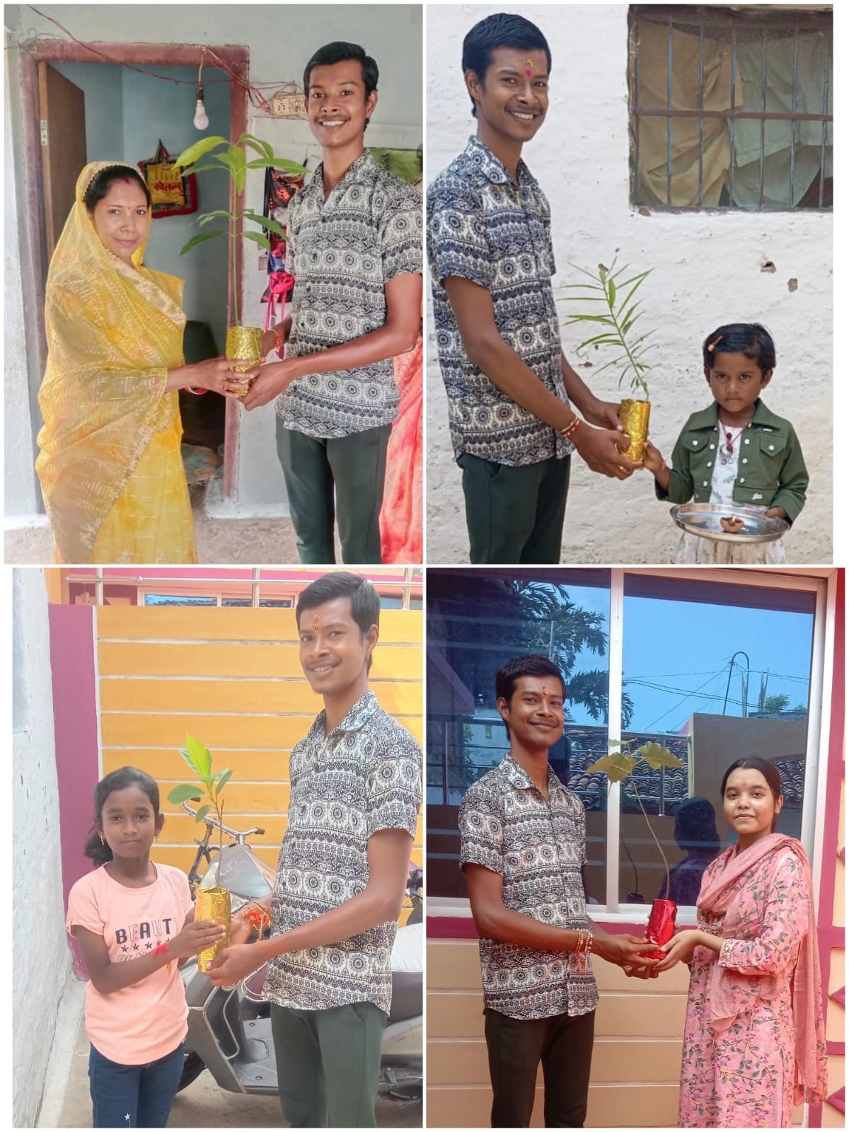 धमतरी l पीजी कॉलेज धमतरी के एनएसएस स्वयंसेवक संकेत कुमार साहू ने रक्षाबंधन के अवसर पर अपनी बहनों को पौधे भेंटकर प्रकृति संरक्षण में सहयोग प्रदान करने हेतु प्रेरित किया। विदित हो कि प्रकृति में लगातार हो रहे परिवर्तनों से लोगों की जीवनशैली में गहरा प्रभाव पड़ा है। पृथ्वी में लगातार वृक्षों की कटाई से ऑक्सीजन की कमी होने एवं ग्रीनहाउस गैसों की मात्रा में अत्यधिक वृद्धि होने के परिणामस्वरूप जलवायु में निरंतर बदलाव हो रहे हैं। अगर इसी प्रकार वनों की कमी होती रहे तो पृथ्वी का तापमान इतना अधिक बढ़ जायेगा कि प्रत्येक प्राणी को अपने जीवन हेतु संघर्ष करना पड़ सकता है। इन परेशानियों से बचने हेतु वृक्षारोपण एक महत्वपूर्ण उपाय है। संकेत कुमार साहू ने राखी बंधवाकर अपनी बहनों को पौधे भेंट करते हुए कहा कि अगर हम सभी मिलकर प्रतिवर्ष एक-एक पौधों का रोपण कर उनकी सुरक्षा का संकल्प लें तो भविष्य में हमें जीवन जीने के लिए किसी भी प्रकार की समस्या का सामना नहीं करना पड़ेगा।