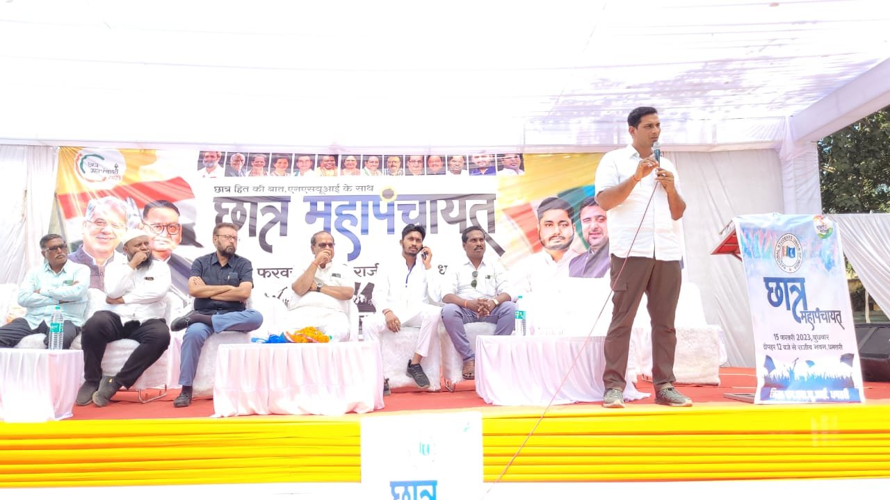 धमतरी । एनएसयूआई के द्वारा छात्र महापंचायत का आयोजन राजीव भवन धमतरी में एनएसयूआई जिलाध्यक्ष राजा देवांगन के नेतृत्व में किया गया । जिसमें मुख्य अतिथि के रूप में भिलाई विधायक देवेंद्र यादव शामिल हुए एनएसयूआई प्रदेश अध्यक्ष नीरज पांडे का भी आगमन हुआ ।धमतरी जिले से जिला कांग्रेस कमेटी अध्यक्ष शरद लोहाना, दिव्यांग सलाहकार बोर्ड अध्यक्ष मोहन लालवानी, मंडी अध्यक्ष कुरूद नीलम चंद्राकर, ईश्वर देवांगन ,घनश्याम साहू, आकाश गोलछा सहित युवा कांग्रेस व कांग्रेस के नेता सम्मिलित हुए ।