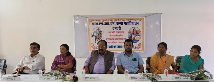 और चरित्रवान समाज का निर्माण किया है और उसी आदर्श के पथ पर चलकर आदिवासी समाज छत्तीसगढ़ की समृद्ध परंपरा की संवाहक बनकर उभरी है, गौरी गौरा होने से धन का उत्पादन बढ़ता है और गौरी गौरा भी आदिवासी घर से निकलती है, उस गौरवशाली और समृद्ध परंपरा को हम सबको जानना आवश्यक है,आदिवासी समाज कभी भीक्षा नहीं माँगते, कभी धर्मांतरण का समर्थन नहीं करते। वहीं अध्यक्षता कर रही दमयंती साहू ने कहा रानी दुर्गावती का योगदान भारत की स्वतंत्रता में अमिट रहा है उन्होंने मर्दानी के साथ मुग़लों से बिना डरे लड़ा है, उस भारत की वीरांगना के जीवन से भारत की प्रत्येक बेटियों को प्रेरणा लेना चाहिए, वहीं युवा भाजपा नेता जय हिंदुजा ने कहा रानी दुर्गावती ने मुग़लों से समझौता ना करते हुए अकबर की सेना के सिपाही आज़म ख़ान को सेना सहित उनके छक्के छुड़ाते हुए कई बार उन्हें खदेड़ा था, उनका शौर्य अविस्मरणीय है उनकी गौरवगाथाएँ सदैव हमारे मस्तिष्क पटल पर विराजित रहेंगी, आदिवासी समाज भारत का गौरवशाली समाज रहा है जल जंगल जमीन सहित प्रकृति के असल रखवाला कोई है तो वो आदिवासी समाज है क्योंकि प्रकृति से वैचारिक और भौतिक रूप से सबसे निकटतम कोई है तो आदिवासी समाज है,उनकी सेवा आध्यात्मिक रूप से भी बेहद उल्लेखनीय है,उक्त कार्यक्रम को एडिशनल कलेक्टर जी आर मरकाम एवं प्राचार्य डी आर चौधरी ने भी संबोधित किया,उक्त अवसर पर कार्यक्रम का संचालन सहायक प्राध्यापक डॉ रोहिणी मरकाम व आभार सहायक प्राध्यापक डॉ जे एल पाटले ने किया। मुख्य रूप से सहायक प्राध्यापक ओपी चंदे सहित बड़ी संख्या में शिक्षक एवं छात्राएँ उपस्थित रहीं।