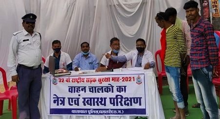 राष्ट्रीय सड़क सुरक्षा माह के दौरान स्वास्थ्य विभाग के सहयोग से वाहन चालकों का कराया गया नेत्र एवं स्वास्थ्य परीक्षण