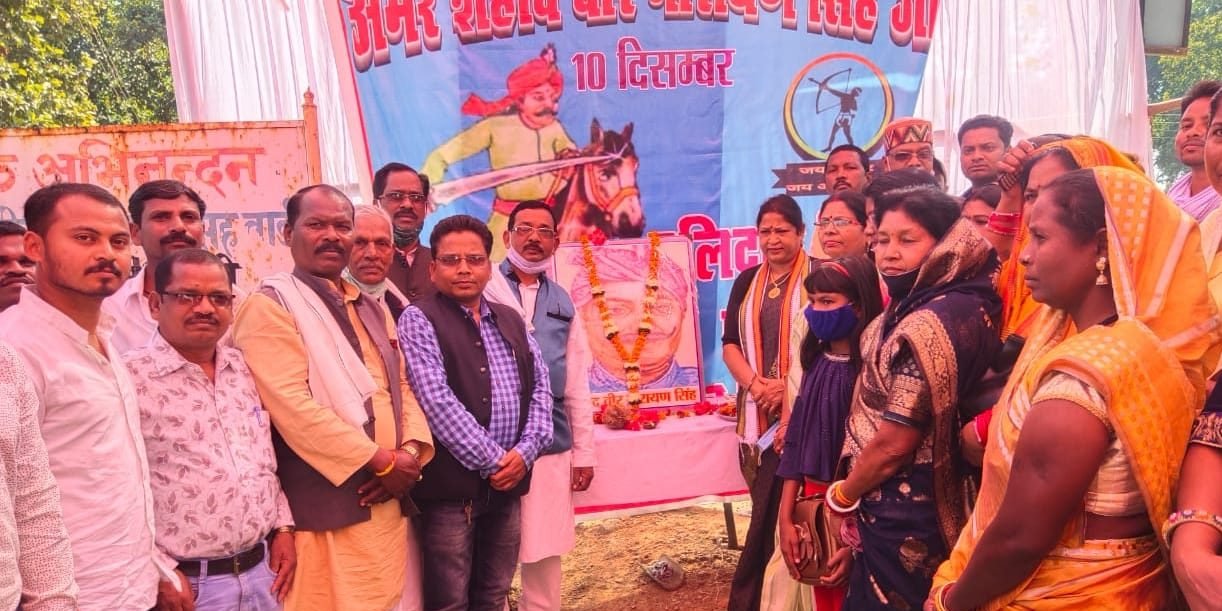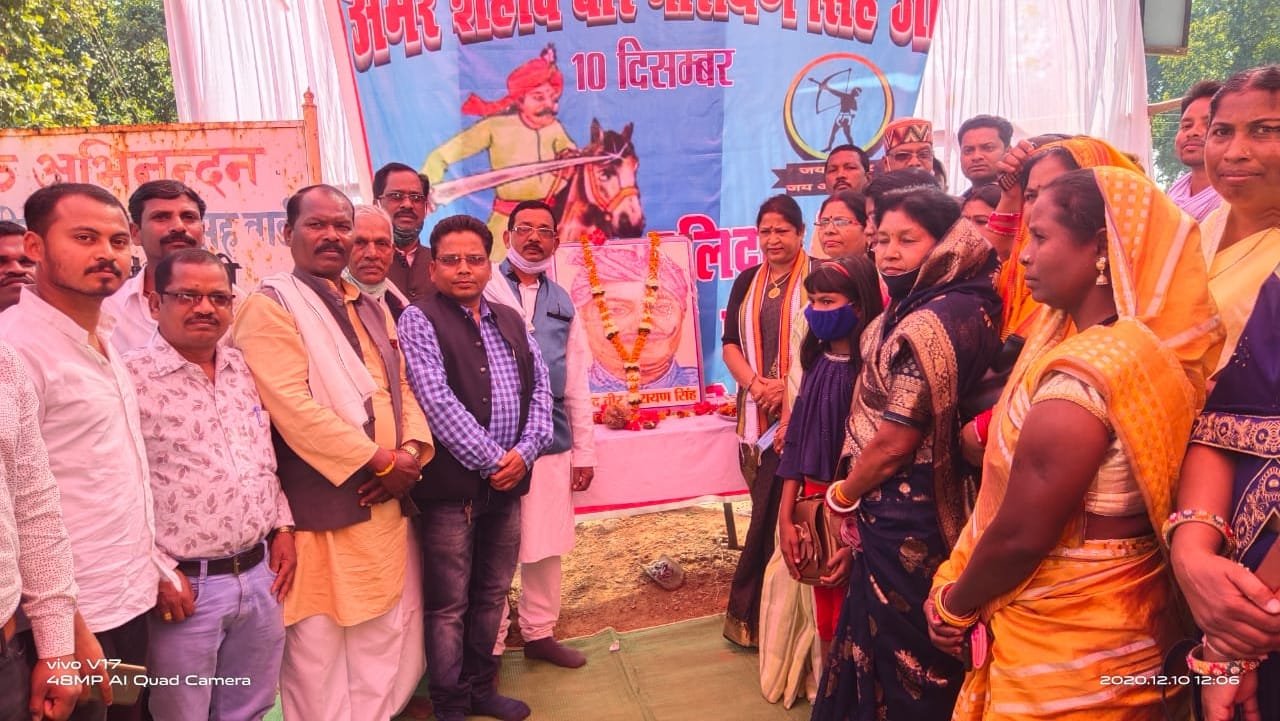 जिन्होंने 1956 के भीषण आकाल में हजारों किसानों के साथ शहडोल के जमाखोरों के गोदामों में धावा बोल कर सारा अनाज लुटा दिए।और दाने दाने के लिए तरस रहे अपनी प्रजा में बांट दिए। गोड़वाना के शेर कहे जाने वाले वीर नारायण सिंह को विनम्र श्रद्धांजलि अर्पित करते हुए श्रीमती ध्रुव ने शहीद वीर नारायण सिंह चौक पर डिवाइडर निर्माण के बाद नये बजट से आदमकद प्रतिमा स्थापित करने की घोषणा की। विशेष अतिथि की आसंदी से पूर्व विधायक श्रीमती अंबिका मरकाम ने अपने उद्बोधन में छत्तीसगढ़ के प्रथम स्वतंत्रता संग्राम सेनानी वीर नारायण सिंह को सच्चे देशभक्त व गरीबों के मसीहा बताया जिन्होंने जेल से भागकर अंग्रेजों से लोहा।वे जल जंगल जमीन के रखवाला व छत्तीसगढ़ के आन बान शान थे। श्रीमती मरकाम ने शहीद वीर नारायण सिंह बलिदान दिवस को भव्य रुप से मनाने पर जोर दिया।जिसका विधायक डाक्टर श्रीमती लक्ष्मी ध्रुव तथा उपस्थित समाजिक जनों ने समर्थन किया।