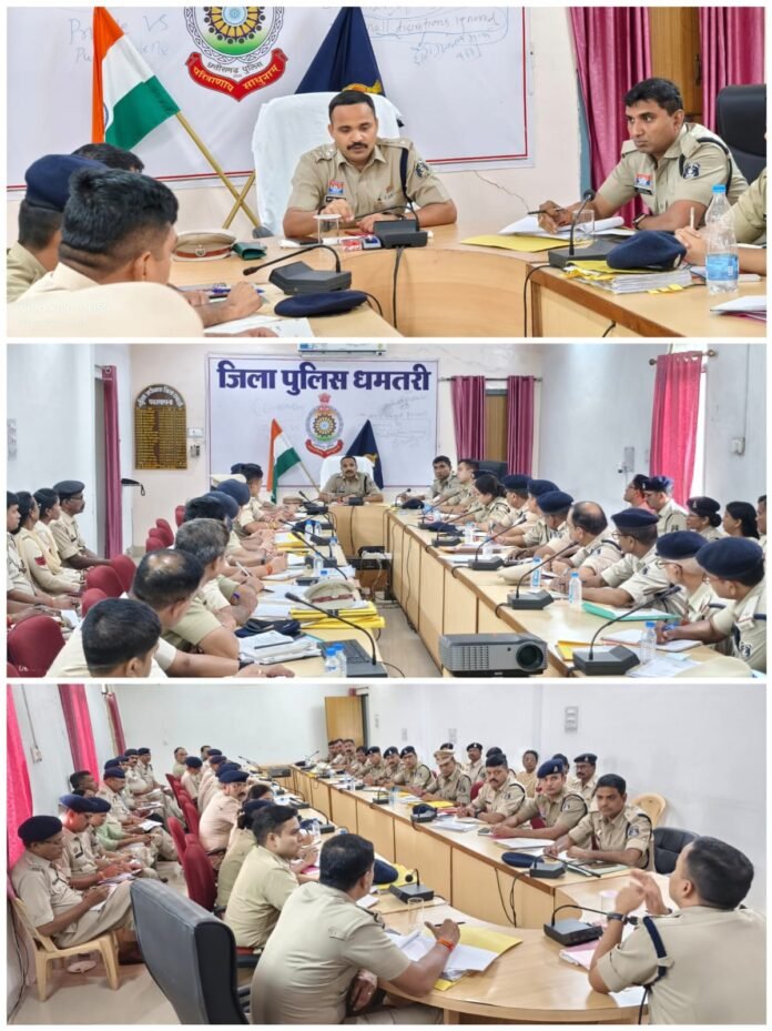 एसपी धमतरी के सख्त निर्देश-: लंबित मामलों का शीघ्र निराकरण कर अपराधियों के खिलाफ ठोस कार्यवाही करें।, चाकूबाजी की घटनाओं पर विशेष निगरानी रखी जाए। नशा,जुआ-सट्टा और गुण्डा तत्वों पर कठोर कार्रवाई जारी रहे।