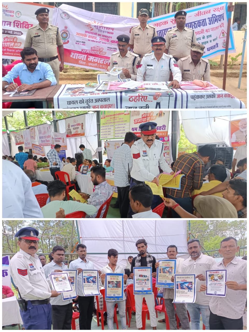 धमतरी पुलिस यातायात द्वारा सुशासन त्यौहार,समाधान शिविर परसतराई एवं सिंगपुर में स्टॉल लगाकर लोगों को दिया गया यातायात नियमों की जानकारी, धमतरी पुलिस यातायात द्वारा समाधान शिविरों के माध्यम से लोगों को यातायात नियमों के बारे में बताते हुए,पंप्लेट बांटकर किया जा रहा है यातायात नियमों के प्रति जागरूक