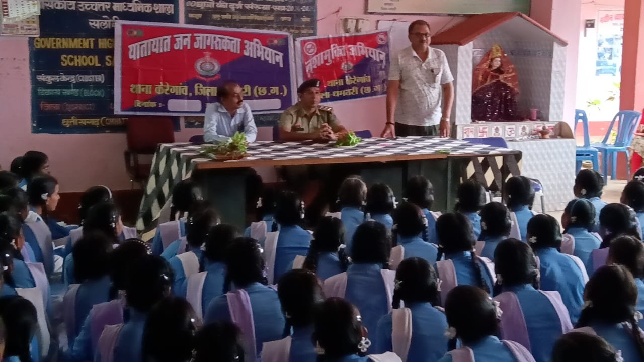 विद्यालयीन छात्र-छात्राओं को यातायात नियम,नशा मुक्ति एवं साइबर सुरक्षा की दी गई महत्वपूर्ण जानकारी, धमतरी पुलिस द्वारा यातायात,नशा मुक्ति, सायबर,गुड टच बैड टच,बालक बालिका एवं महिला संबंधी अपराध सहित लगभग 60 जागरूकता कार्यक्रम का किया जा चुका है आयोजन
