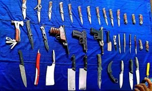 अपराधों की रोकथाम हेतु ऑनलाइन शॉपिंग साइट से मंगाए गए चाकू छुरी एवं अन्य धार दार उपकरणों तथा एयर पिस्टल को किया गया बरामद