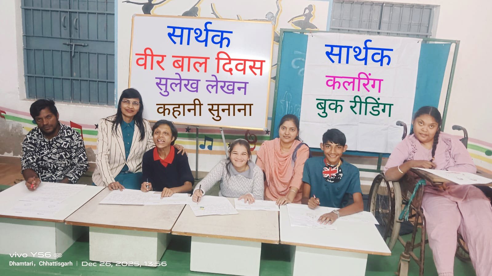 धमतरी। समाज कल्याण विभाग एवं महिला बाल विकास विभाग, धमतरी द्वारा प्राप्त निर्देशानुसार मानसिक दिव्यांग प्रशिक्षण केंद्र सार्थक स्कूल, धमतरी में वीर बाल दिवस भावपूर्ण एवं प्रेरणादायी वातावरण में मनाया गया। इस अवसर पर स्कूल के विशेष बच्चों ने अपनी प्रशिक्षक देविका दीवान के मार्गदर्शन में सुलेख लेखन, रंग भरना, कहानी सुनाना एवं पुस्तक पठन जैसी रचनात्मक गतिविधियों में उत्साहपूर्वक सहभागिता की। मोनिका आहूजा, हर्षिता गजेंद्र, करणवीर सिंह खालसा, नेमेश साहू, आकाश आहूजा एवं दीपाली सोनी ने सक्रिय भागीदारी करते हुए अपनी रचनात्मक प्रतिभा का परिचय दिया। संस्था की अध्यक्ष डॉ. सरिता दोशी ने बच्चों को गुरु गोबिंद सिंह जी के वीर बालकों की अमर गाथा सुनाते हुए कहा कि वीर बाल हमें सत्य, सदाचार और साहस के मार्ग पर चलना सिखाते हैं तथा कठिन परिस्थितियों में भी भयमुक्त रहने की प्रेरणा देते हैं। विशेष बच्चों की इस रचनात्मकता की सराहना करते हुए समाज कल्याण विभाग, धमतरी की उपसंचालक डॉ. मनीषा पांडे, महिला बाल विकास विभाग, धमतरी के जिला बाल संरक्षण इकाई की काउंसलर मोहिनी रानी गजेंद्र, सार्थक की सचिव स्नेहा राठौड़, संस्था के सदस्यों एवं प्रशिक्षकों मैथिली गोड़े, कौशिल्या यादव एवं काजल रजक ने बच्चों को शुभकामनाएँ प्रेषित कीं।